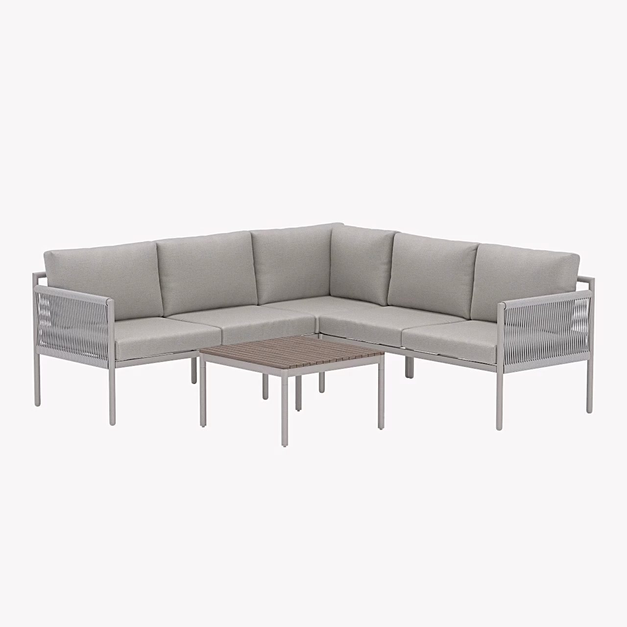 - Õhuline disain ja tagasihoidlikud punutud detailid – annavad nurgadiivanile modernse ja stiilse välimuse, mis sobib suurepäraselt põhjamaise ja minimalistliku väliruumi kujundusega.