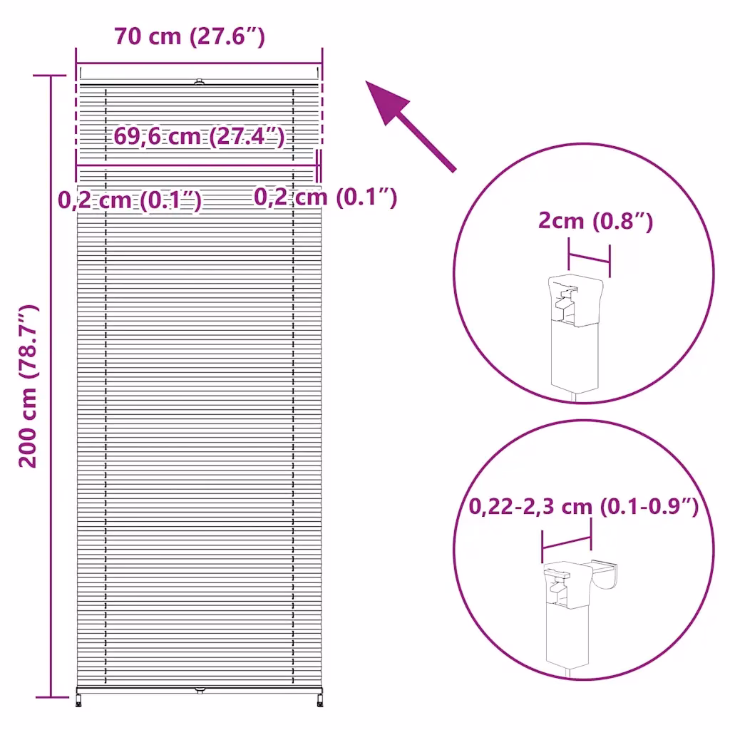 - Mõõtmed 70 x 200 cm sobivad tüüpilistele kõrgematele akendele ja klaasuksele sarnastele avadele