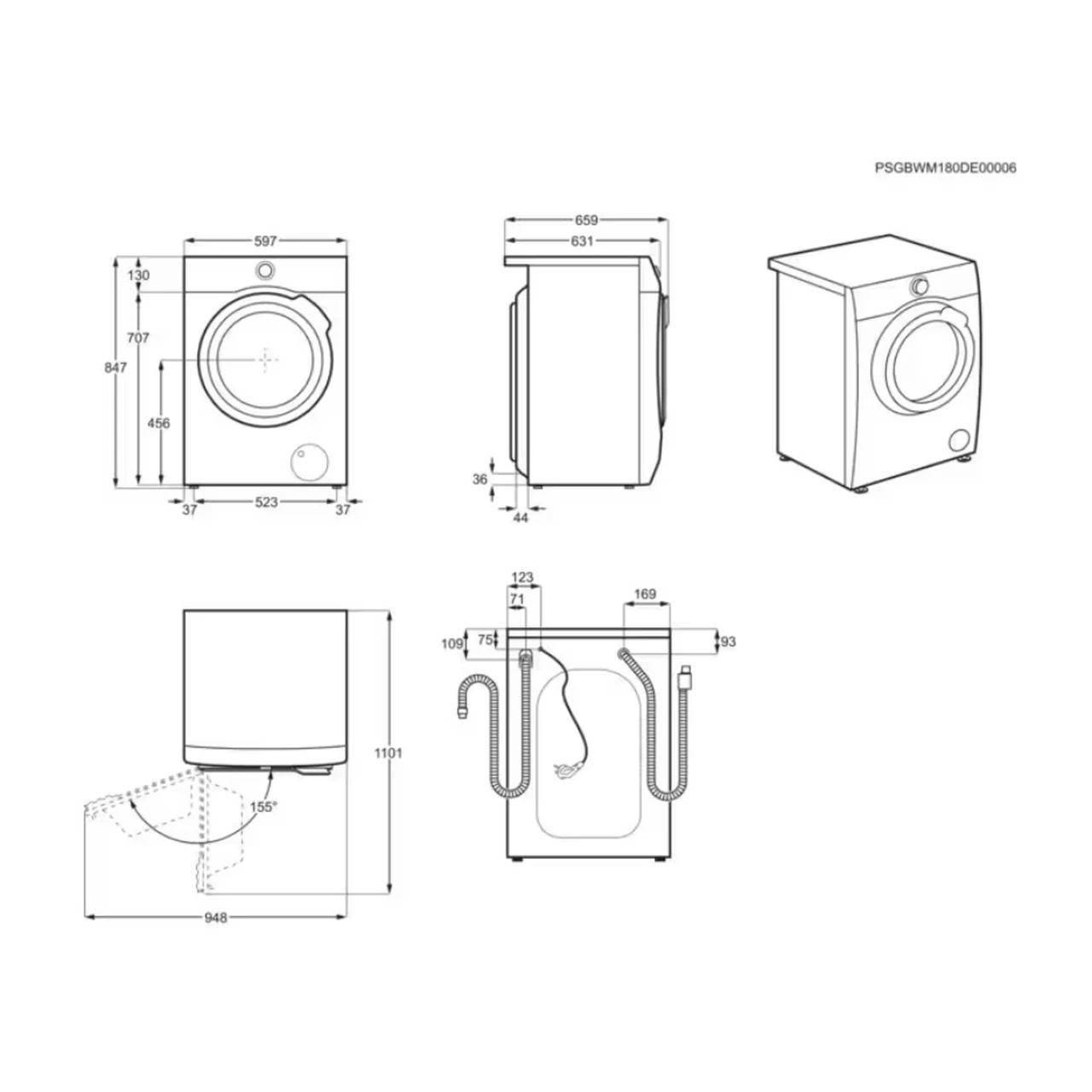 AEG LWR85165O on vabaltseisev kuivatiga pesumasin, mis on mõeldud paigaldamiseks tasasele ja stabiilsele põrandale. Enne paigaldust soovitatakse üle mõõta niši laius, kõrgus ja sügavus ning arvestada ruumiga ukse avamiseks ja voolikute ühendamiseks. Ühendage seade külma vee võrku ja äravoolu vastavalt tootja juhendile ning veenduge, et masin on loodi. Regulaarne hooldus nagu filtrite ja pesukummide puhastamine ning pesumasina puhastusprogrammide kasutamine aitab säilitada pesutulemuse ja pikendada seadme tööiga. Täpsemad paigaldus ja hooldusjuhised leiate kasutusjuhendist.