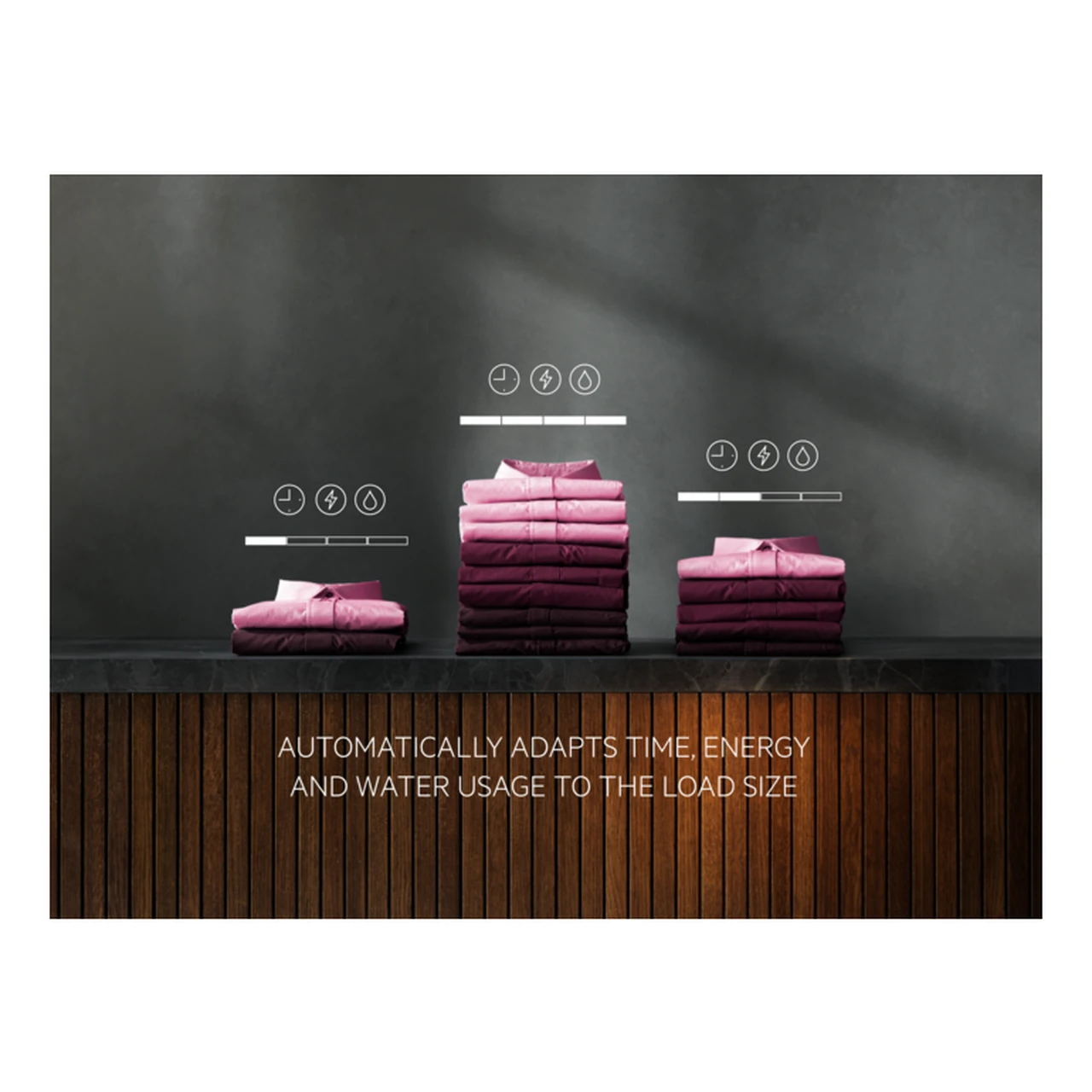 - PreciseLoad koormuse tuvastus kaalub pesu ja kohandab automaatselt vee- ja energiakulu ning programmi pikkust, kui trumlis on vähem pesu.