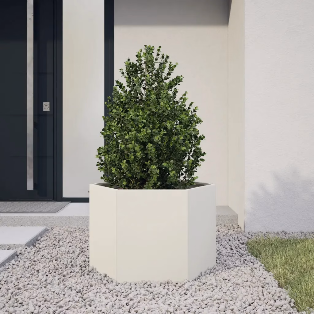 Kui soovid luua selgepiirilise ja korrastatud peenra, on see kuusnurkne terasest taimekast praktiline lahendus. Avatud põhi ja kõrgendatud konstruktsioon toetavad taimede tervet kasvu, samal ajal kui valge ja tagasihoidlik disain sobitub hõlpsasti erinevate aedade ja õuealade kujundusega.