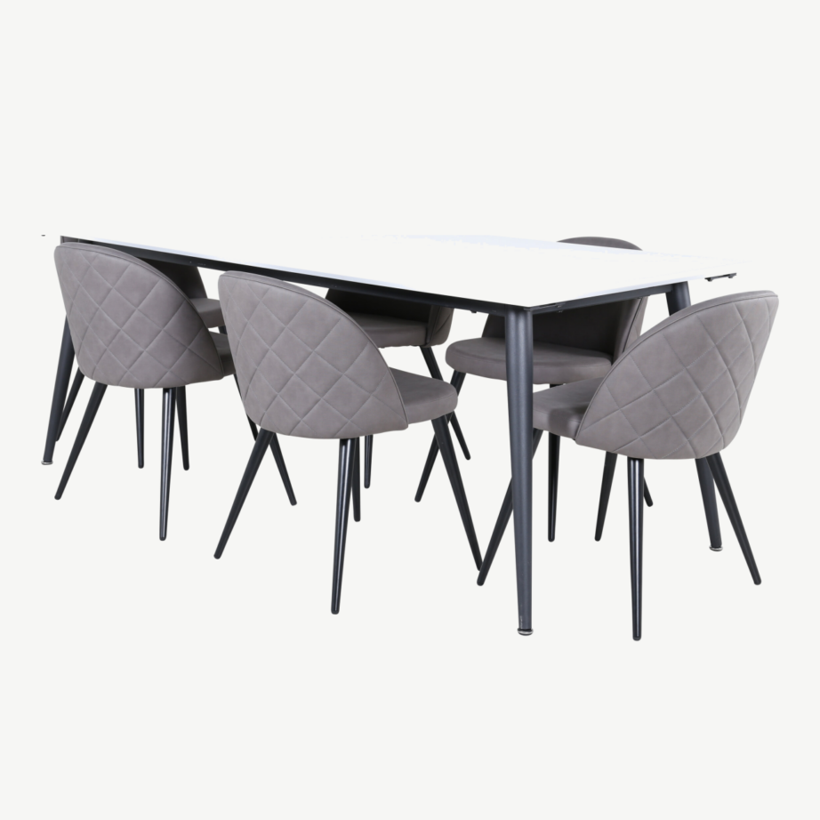 Jimmy valge söögilauakomplekt 6 tooliga on usaldusväärne valik neile, kes väärtustavad põhjamaist disaini, vastupidavaid materjale ning funktsionaalsust. Sobib igapäevaseks kasutamiseks ning püsib kaunina ka aastate pärast.
