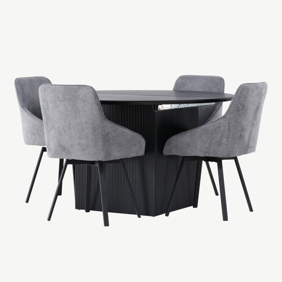 - Komplekt: 1 laiendatav ümmargune laud Matilda, 4 polsterdatud tooli Rosie