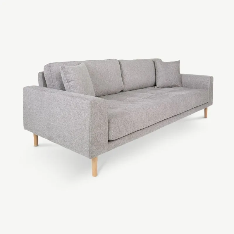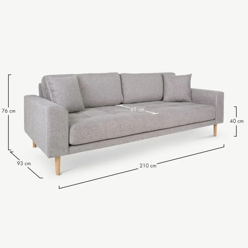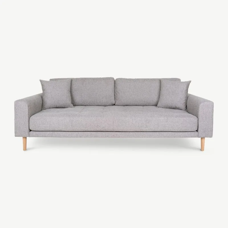 Lalita 3-kohaline diivan ühendab endas ajatu elegantsi ja kaasaegse mugavuse. Selle pehme heledahall kangas ning naturaalsest puidust jalad loovad stiilse ja õdusa atmosfääri igas elutoas.