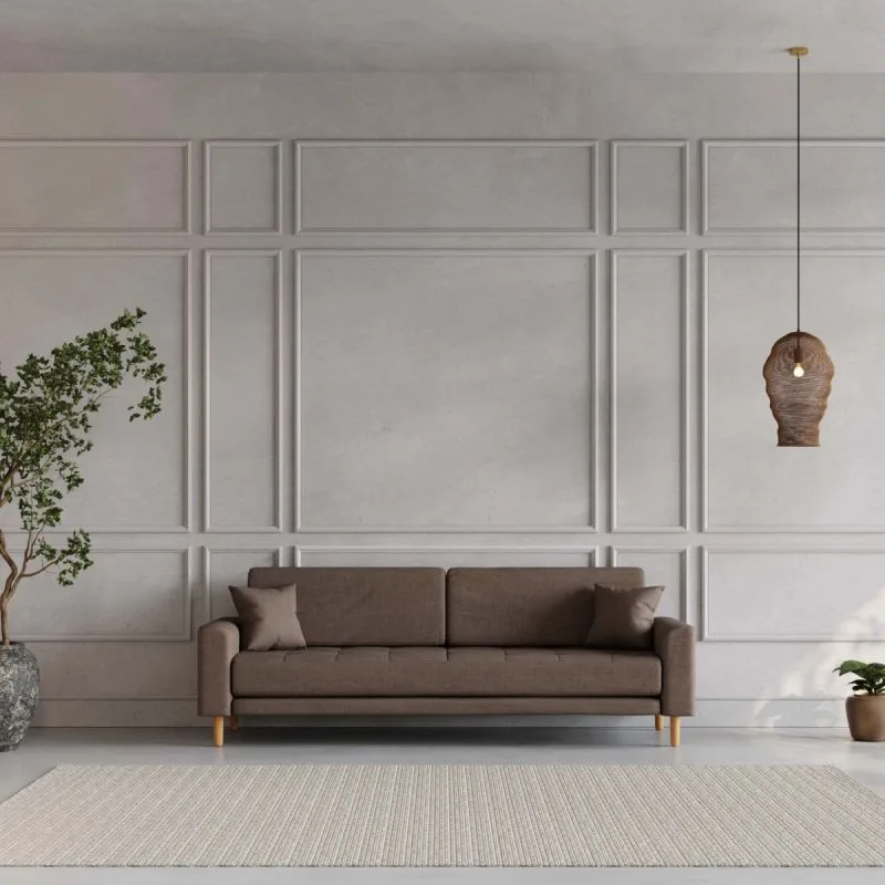 Diivani pruun kangaskate lisab soojust ja sügavust, muutes selle täiuslikuks täienduseks igale interjöörile. Istumissügavus 65 cm ja istumiskõrgus 40 cm tagavad suurepärase ergonoomika, pakkudes ülimat mugavust nii lõõgastumiseks kui ka külaliste vastuvõtmiseks. Kaasasolevad kaks dekoratiivpatja lisavad pehmust ja visuaalset harmooniat.