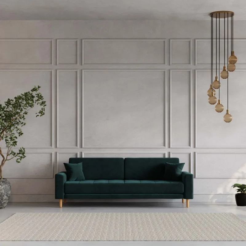 Lalita 3-kohaline diivan ühendab endas ajatu elegantsi ja erakordse mugavuse. Tumeroheline sametkate lisab interjööri sügavust ja rafineeritust, samas kui kvaliteetne konstruktsioon tagab vastupidavuse ja pikaealisuse. See diivan on ideaalne valik neile, kes hindavad luksuslikku välimust ja meeldivat istumiskogemust.