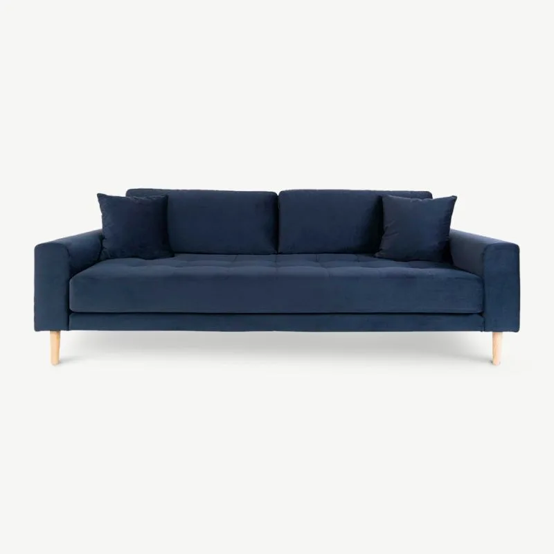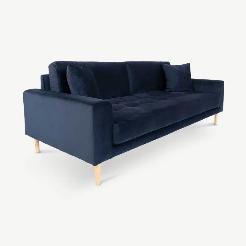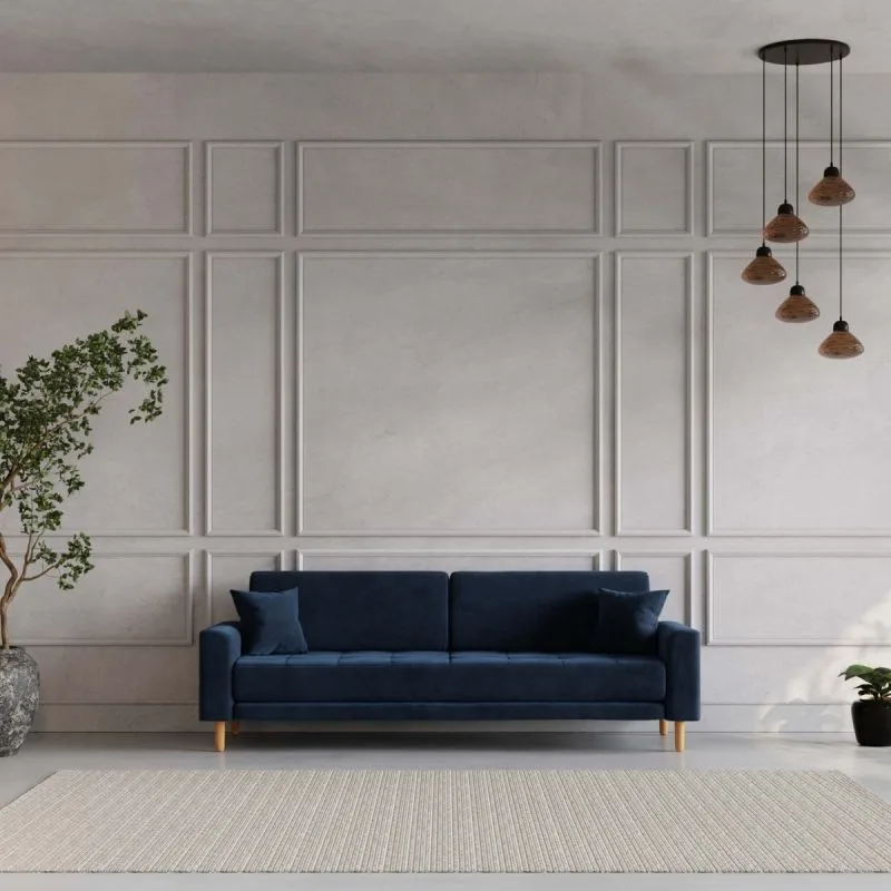 Lalita 3-kohaline diivan ühendab stiili ja mugavuse, pakkudes erakordselt pehmet istumiskogemust. Selle sügav tumesinine sametpolster ja naturaalsest pöögipuidust jalad loovad harmoonilise koosluse, mis sobib nii klassikalisse kui ka kaasaegsesse interjööri.