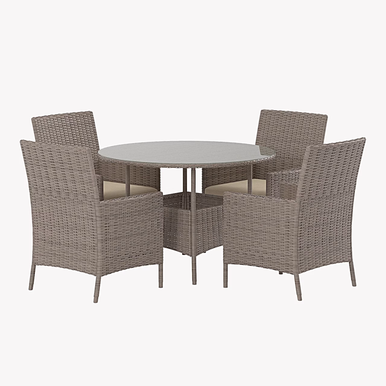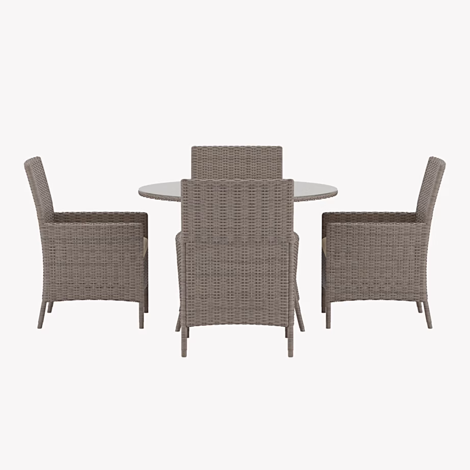 Chios beež ümmargune aiasöögikomplekt klaaslauaga, 4 tooli, 9891-222