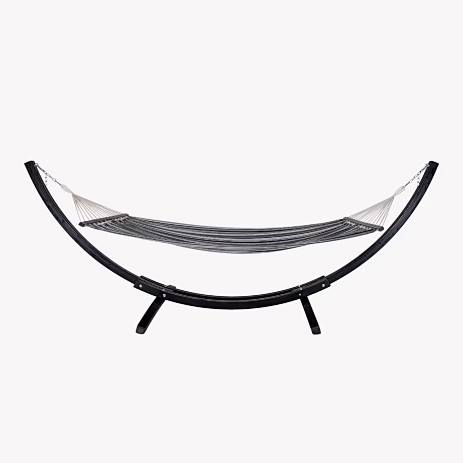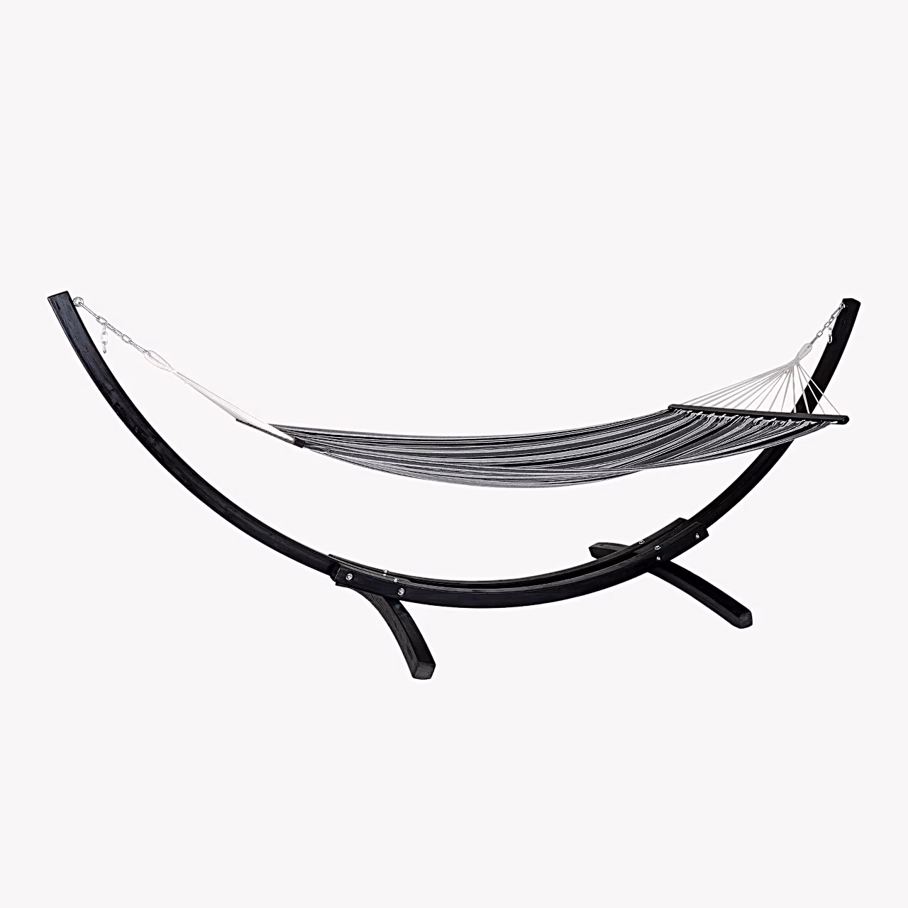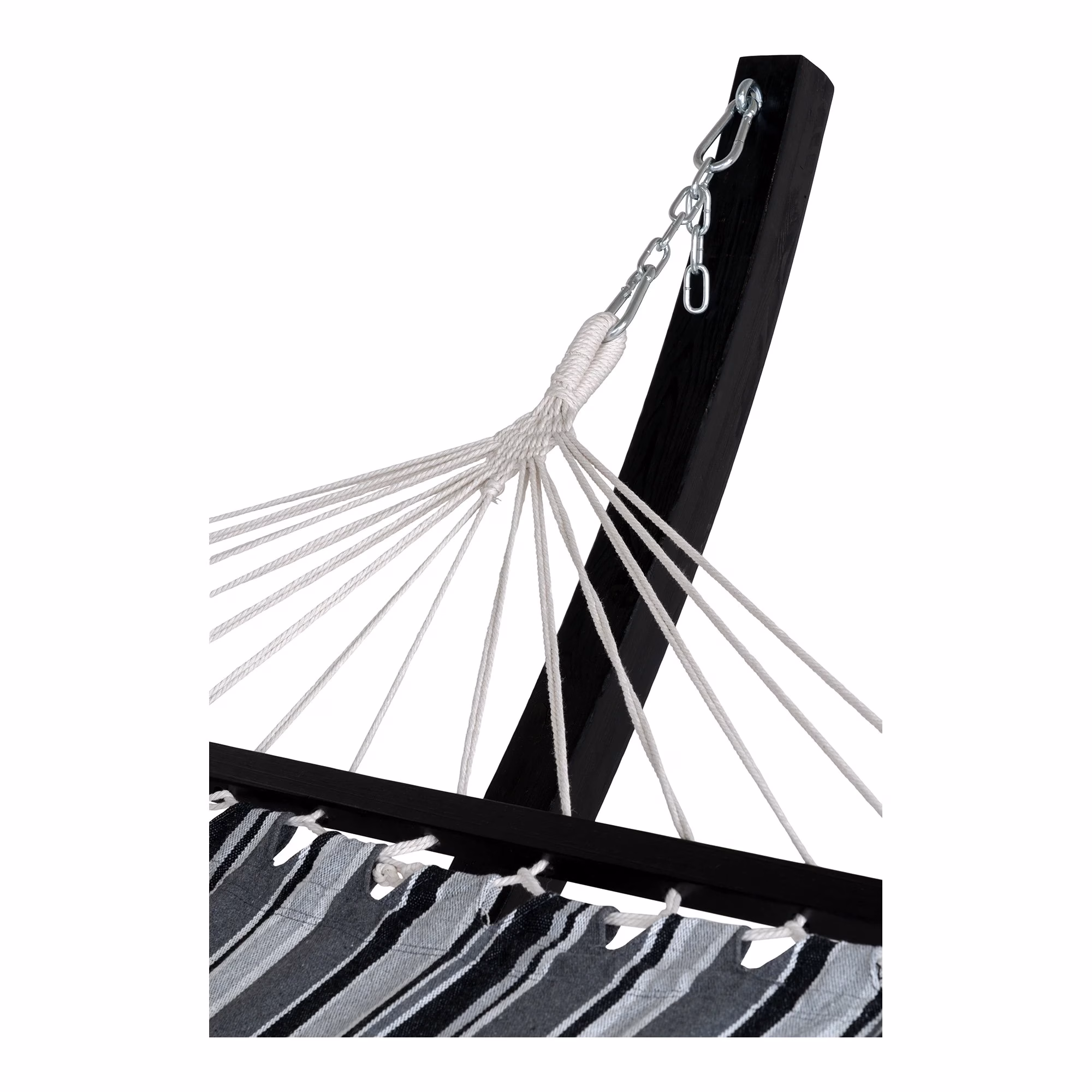 Võrkkiik lehispuidust alusel puuvilla-polüestri segust kangaga pakub mugava koha lõõgastumiseks. Klassikaline musta, halli ja valge triibuline kangas sobitub erinevate aedade ja terrassidega.