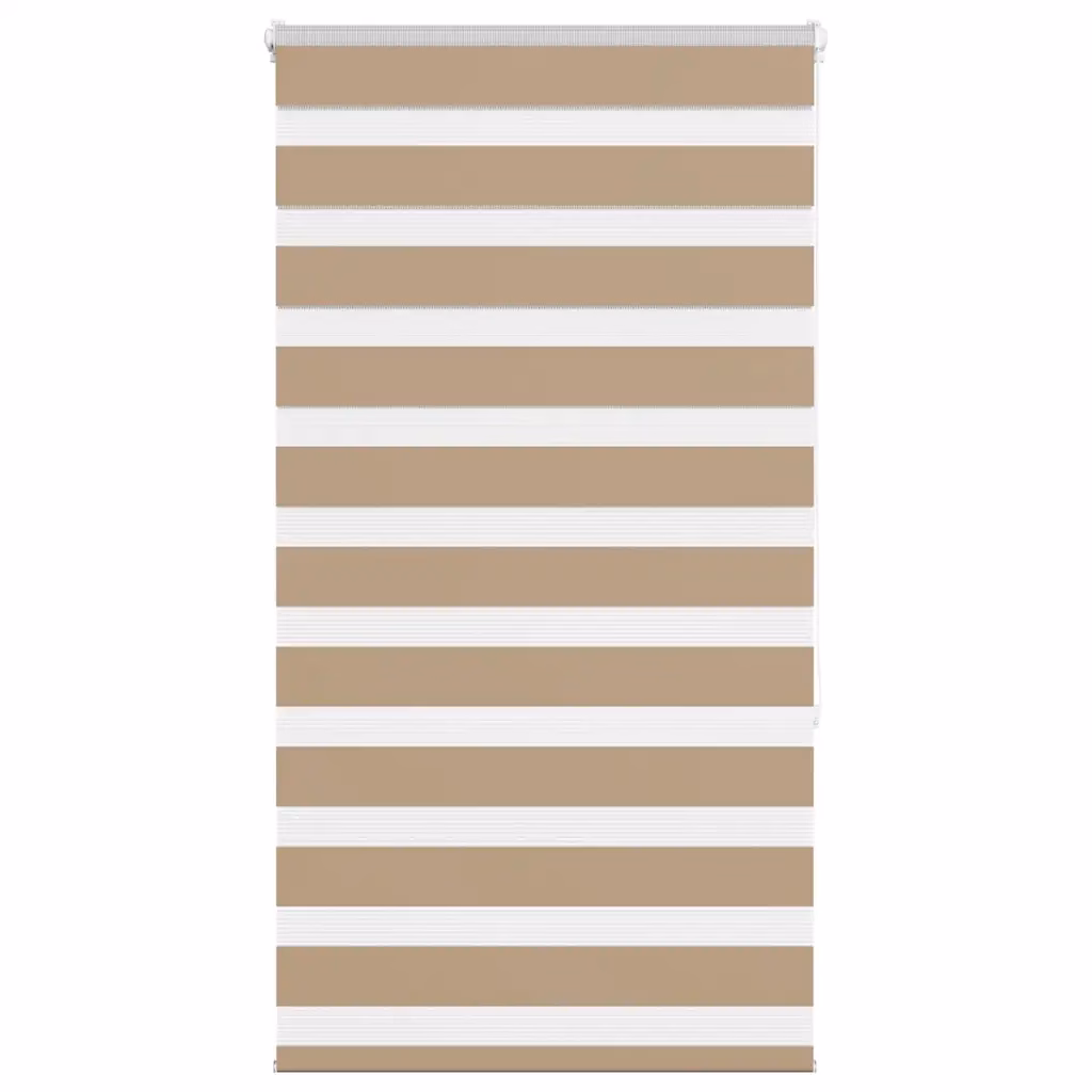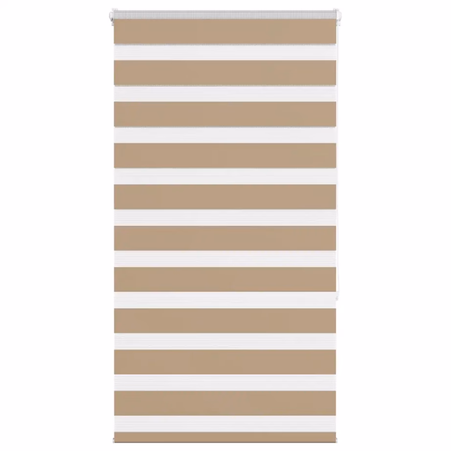 Liivapruun sebra ruloo mõõtmetega 85 x 150 cm ühendab ühe toote sees nii kardina kui ruloo funktsiooni. Kahekihiline triibuline kangas võimaldab sujuvalt vahetada poolläbipaistva ja peaaegu pimendava seadistuse vahel, et tagada ruumis sobiv valgus ja vajalik privaatsus.