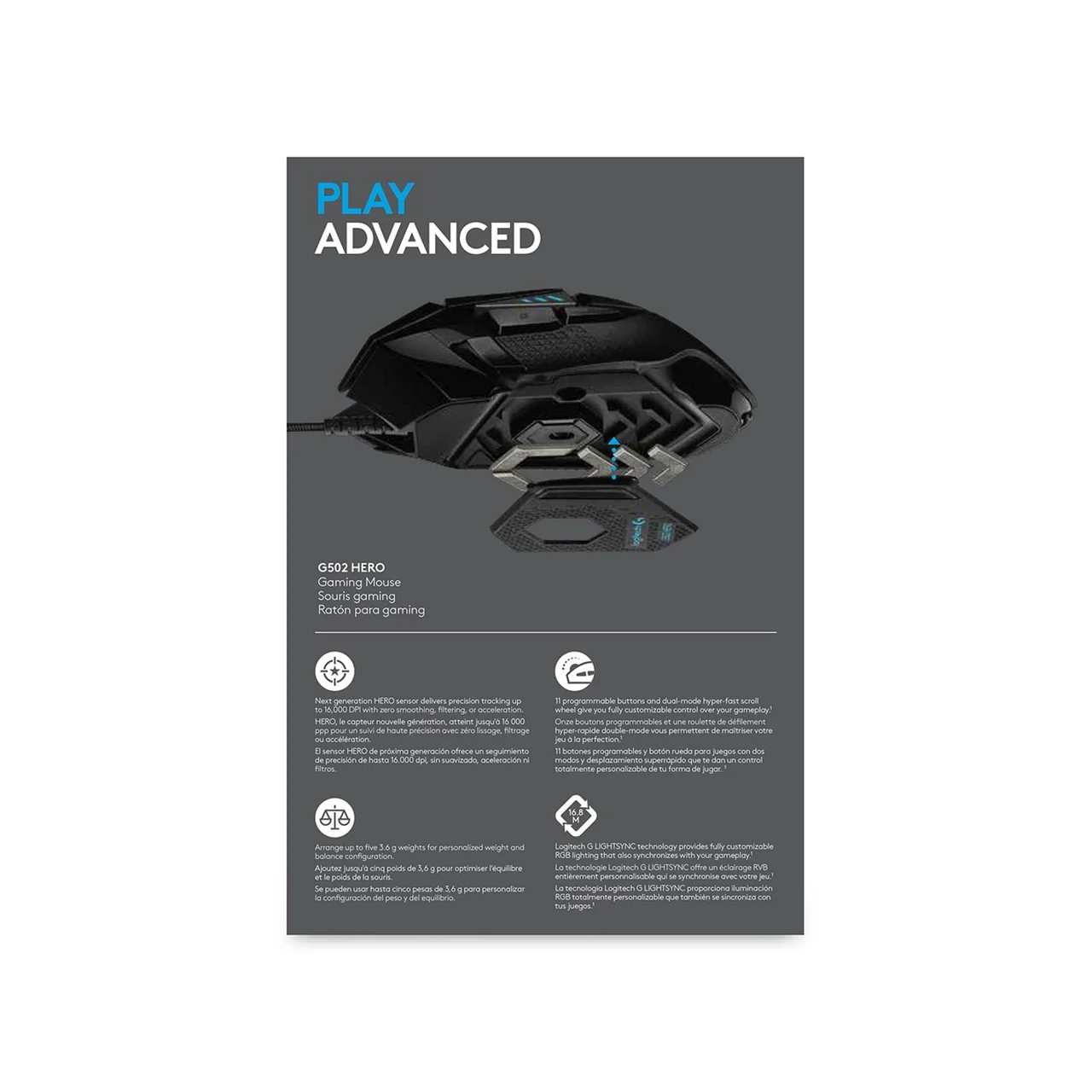 Logitech G502 HERO High Performance Gaming Mouse on kõrge täpsusega juhtmega mängurihiir, mis ühendab tipptasemel tehnoloogia, ülimalt täpse HERO optilise anduri ning täielikult kohandatavad funktsioonid. See hiir sobib mängijatele, kes hindavad kiiret reageerimist, mitmekülgsust ja isikupärastatud seadistust. Tänu 11 programmeeritavale nupule ning reguleeritavale kaalule kohandub see tõhusalt erinevate mängustiilide ja kasutaja vajadustega.