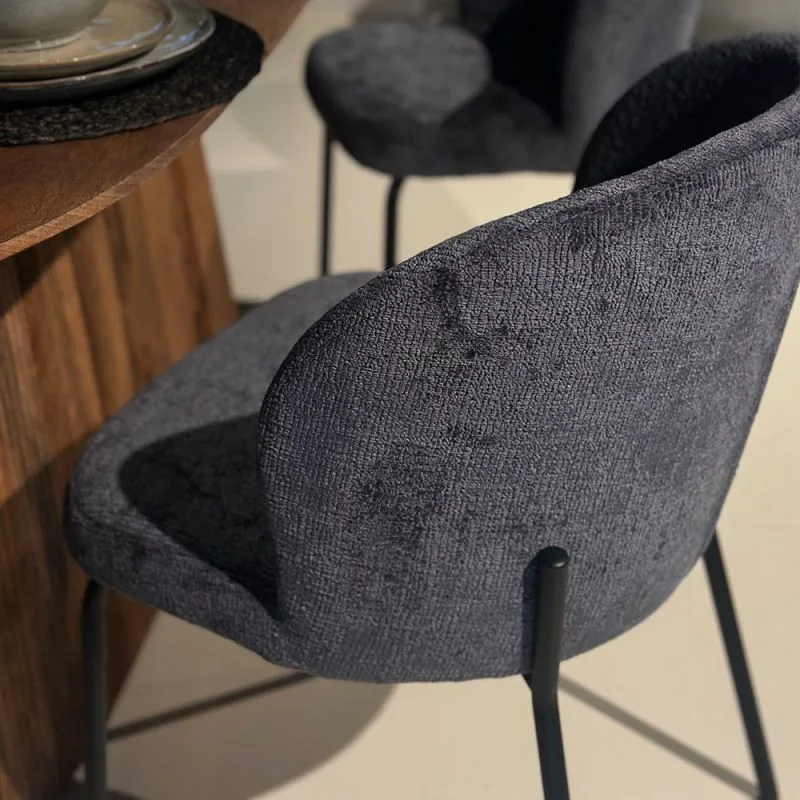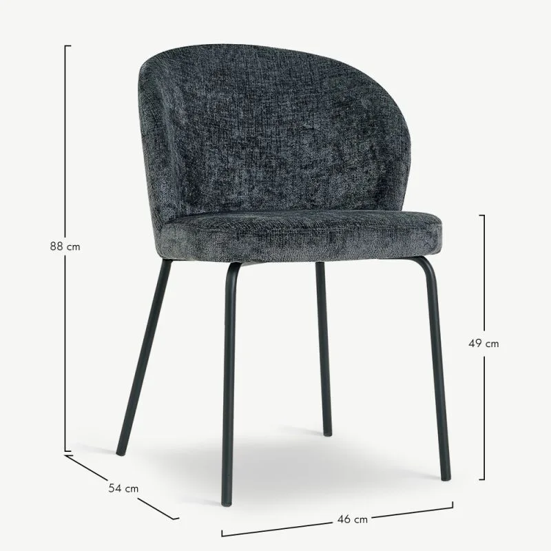 Luara söögitool on kaetud pehme ja vastupidava antratsiithalli kangaga, mis lisab ruumile soojust ja hubasust. Mustad metallist jalad annavad toolile modernse ilme ning tagavad stabiilsuse ja tugevuse. Tänu ergonoomilisele disainile ja 49 cm kõrgusele istmele on tagatud maksimaalne istumismugavus isegi pikematel õhtusöökidel.