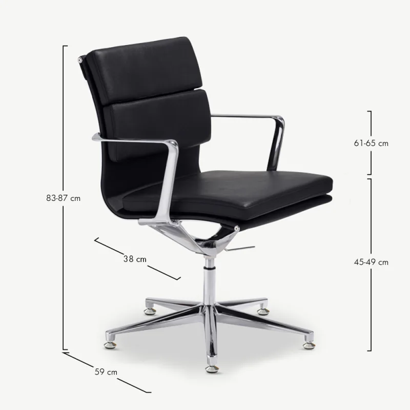 Lucas konverentsitool ühendab madala seljatoega disaini ning esmaklassilise musta nahkkatte, pakkudes professionaalsele keskkonnale stiilset ja mugavat istumislahendust. Tooli polsterdatud iste ja seljatugi tagavad suurepärase ergonoomika, muutes selle ideaalseks valikuks pikkadele koosolekutele.