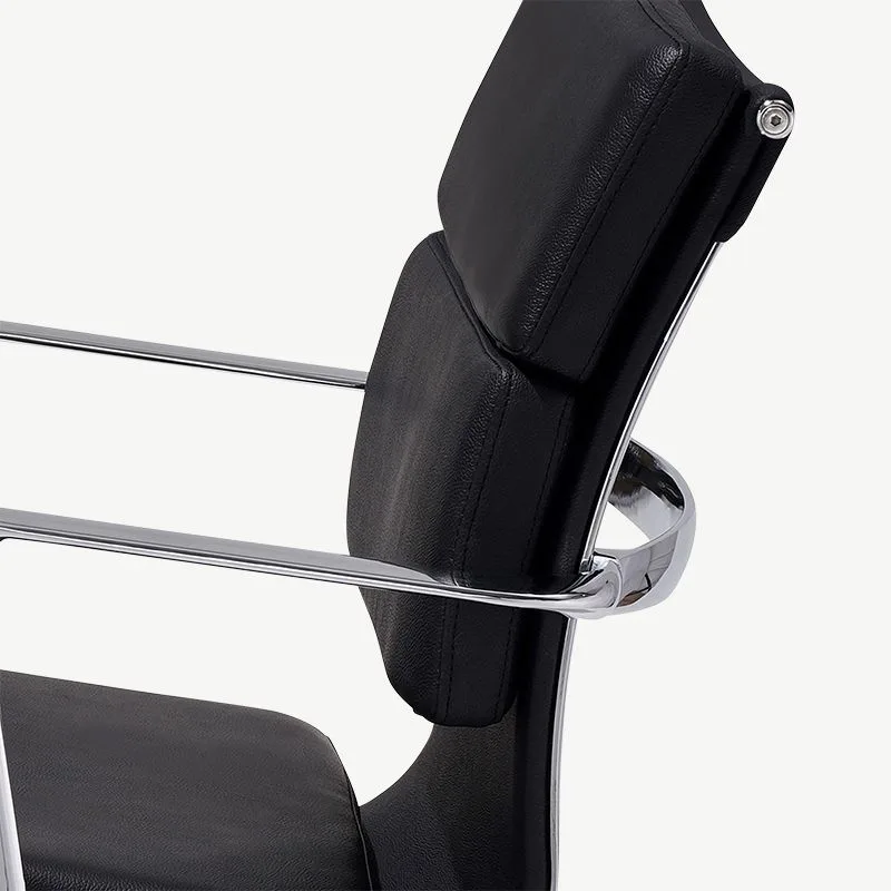 Tooli raam on valmistatud vastupidavast kroomitud metallist, mis tagab nii tugeva konstruktsiooni kui ka elegantse välimuse. Kvaliteetne must nahkkate ning kunstnahast tagakülg lisavad luksuslikku ilmet ning muudavad selle tooli ajatu disainiga kontorimööbli täiuslikuks täienduseks.