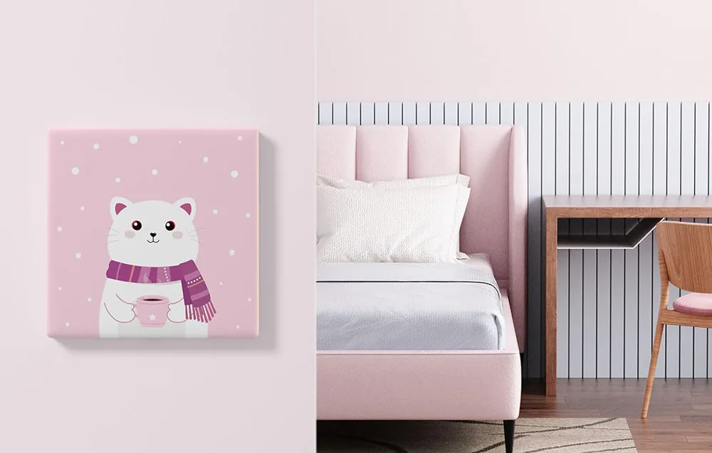 Lüliti dekoratiivkate SONOFF T5 Cartoon 1C puutelülitile roosa taustal, talvemuustriga ja kassi pildiga