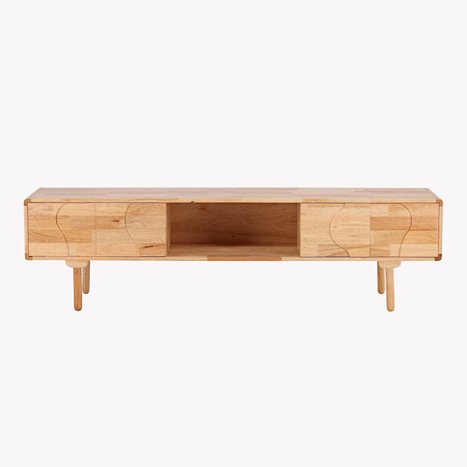 - Kvaliteetne kummipuit – TV-alus on valmistatud täispuidust kummipuidust, mis on vastupidav igapäevasele kasutusele ja tagab mööblieseme pikaealisuse.