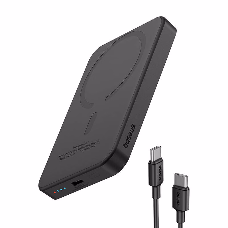 Kompaktne magnetiline Baseus 5000 mAh akupank võimaldab mugavalt laadida nutitelefoni nii juhtmevabalt (kuni 15 W) kui ka USB‑C kaabli abil (kuni 20 W). Õhuke 14,7 mm korpus mahub hõlpsasti taskusse ning kaitseb seadet ülelaadimise ja muude rikete eest.