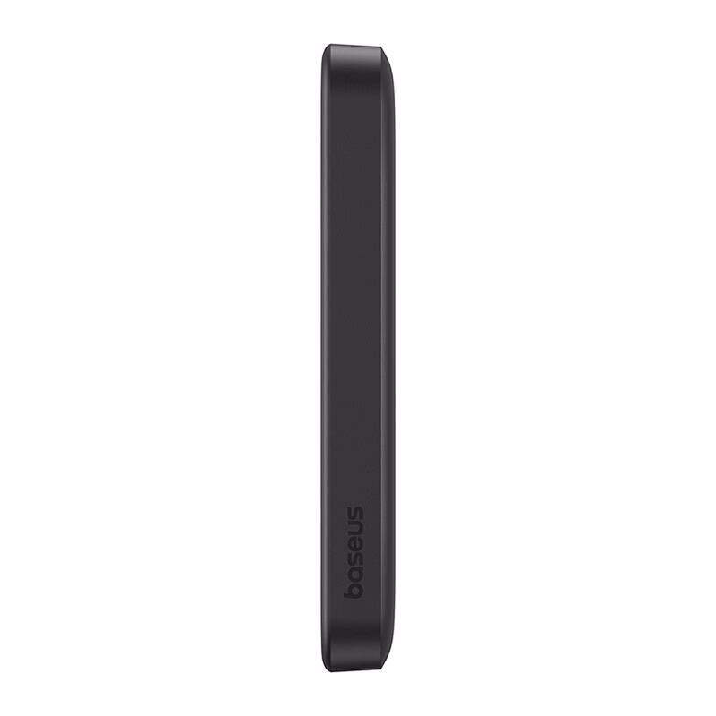 Baseus akupank eristub õhukese korpuse ja praktilise kujunduse poolest. Vaid umbes 14,7 mm paksune seade (mõõdud 14,2 × 68,9 × 106,4 mm) mahub hõlpsasti taskusse või väikesesse kotti, ilma et võtaks palju ruumi. Kompaktsetest mõõtmetest hoolimata tagab seade kaitstud ja stabiilse laadimise, vähendades ülelaadimise, ülepinge ja muude võimalike rikete ohtu. Elegantne must viimistlus ja universaalne vorm teevad sellest akupangast sobiva lisaseadme nii igapäevaseks kasutamiseks kui ka reisidele kaasa võtmiseks.