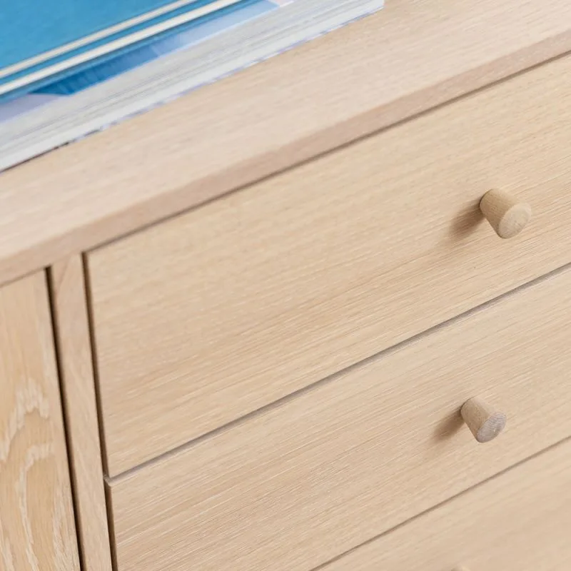 Manaia kummut on loodud kestma. Selle tugev tammepuidust konstruktsioon ja täiuslikult viimistletud tammevineer tagavad pikaealisuse ning vastupidavuse igapäevaseks kasutamiseks. Iga riiul talub kuni 15 kg raskust, võimaldades hoiustada ka raskemaid esemeid, samas kui metallsiinidel liikuvad sahtlid tagavad mugava ja sujuva kasutuse.