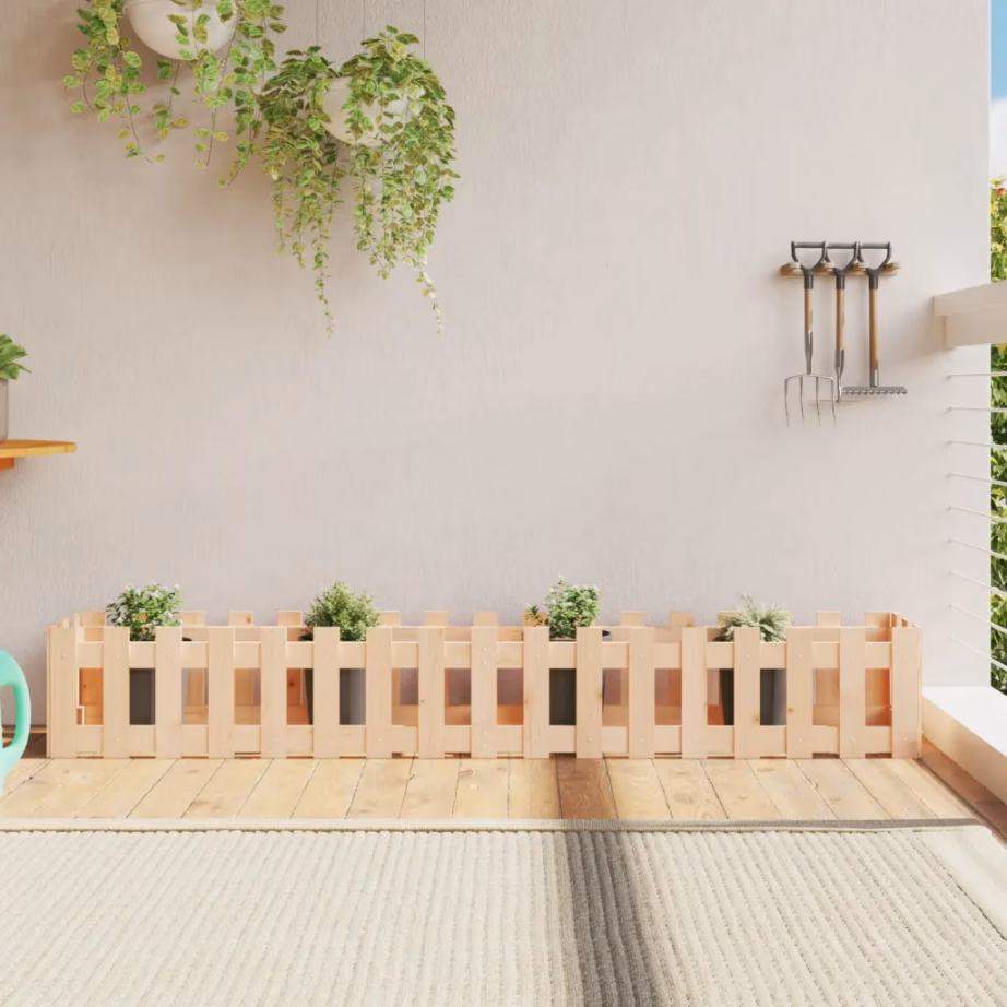 See männipuidust kõrgendatud taimelava on praktiline lahendus lillede ja teiste taimede kasvatamiseks aias, terrassil või rõdul. Pikk ja kitsas kuju loob ühtlase dekoratiivse aiapiirde mulje, samal ajal pakkudes taimedele piisavalt mulda ja kasvuruumi. Töötlemata männipuit annab naturaalne pruunika tooni ja maalähedase ilme, mida on lihtne sobitada erinevate väliruumidega.