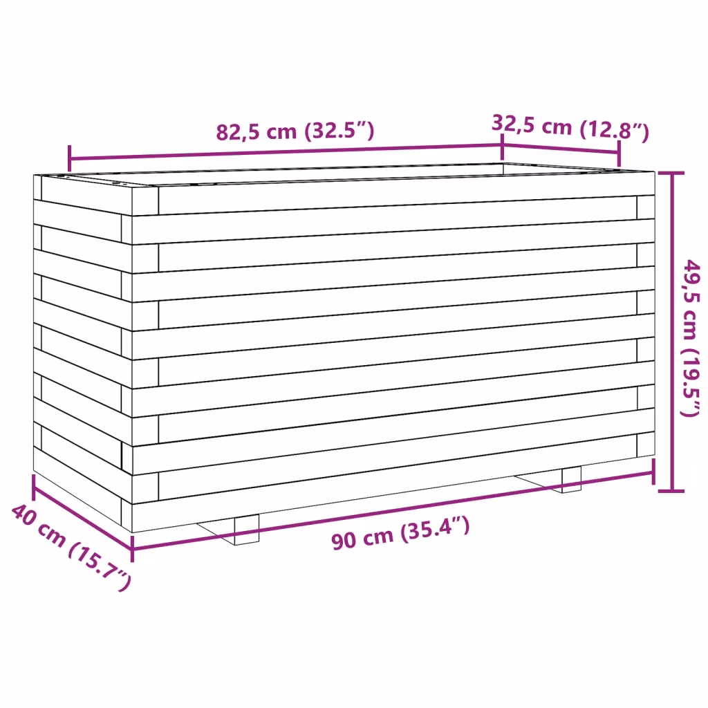 - Praktilised välismõõdud – kompaktsed mõõtmed 90 x 40 x 49,5 cm (P x L x K) teevad taimekastist hea valiku nii avarasse aeda kui ka väiksemale terrassile.