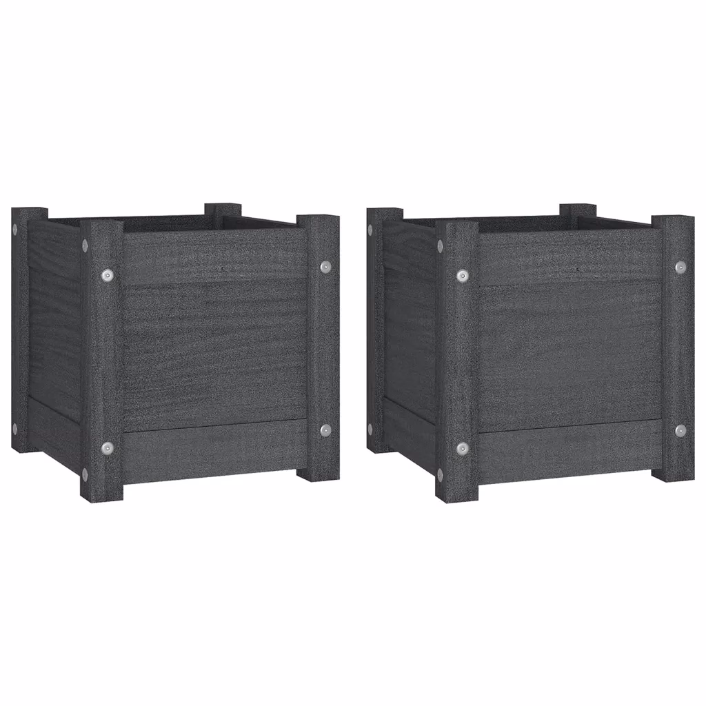 • 2 x taimekasti halli värvi männipuidust, mõõtudega 31 x 31 x 31 cm (L x S x K)