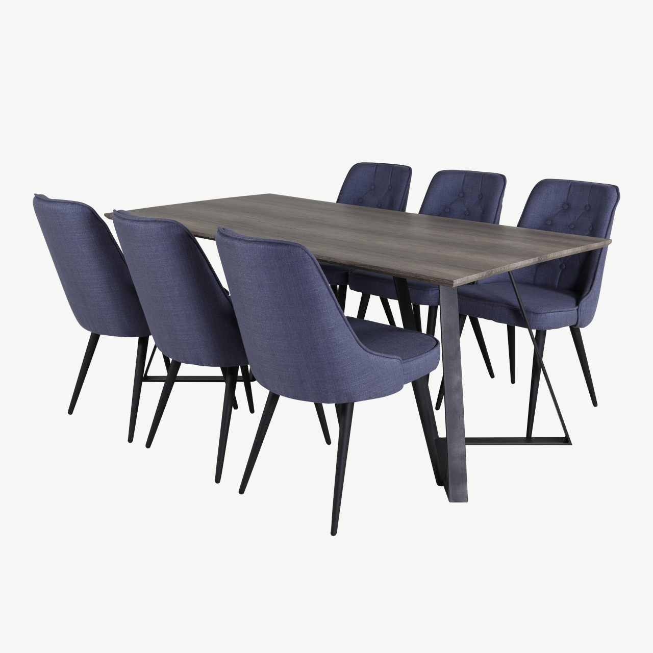 Marina hall söögikomplekt siniste toolidega ühendab modernse disaini, vastupidavuse ja kasutusmugavuse. Silmapaistev ristkülikukujuline laud ja elegantse polsterdusega toolid loovad põhjamaiselt kutsuva atmosfääri nii igapäevasteks eineteks kui ka pidulikumateks sündmusteks pere ja sõpradega.