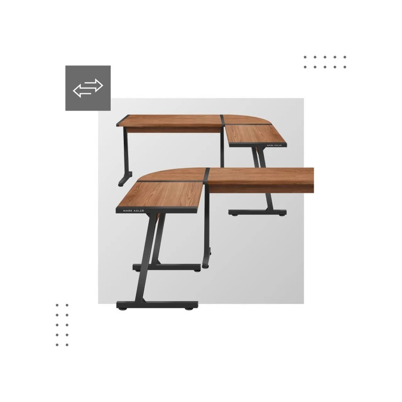 Pronks-must L-kujuline arvutilaud Mark Adler Leader 5.5 WN sobib hästi koju või kontorisse, pakkudes ruumikat tööpinda ja tugevat terasraami.