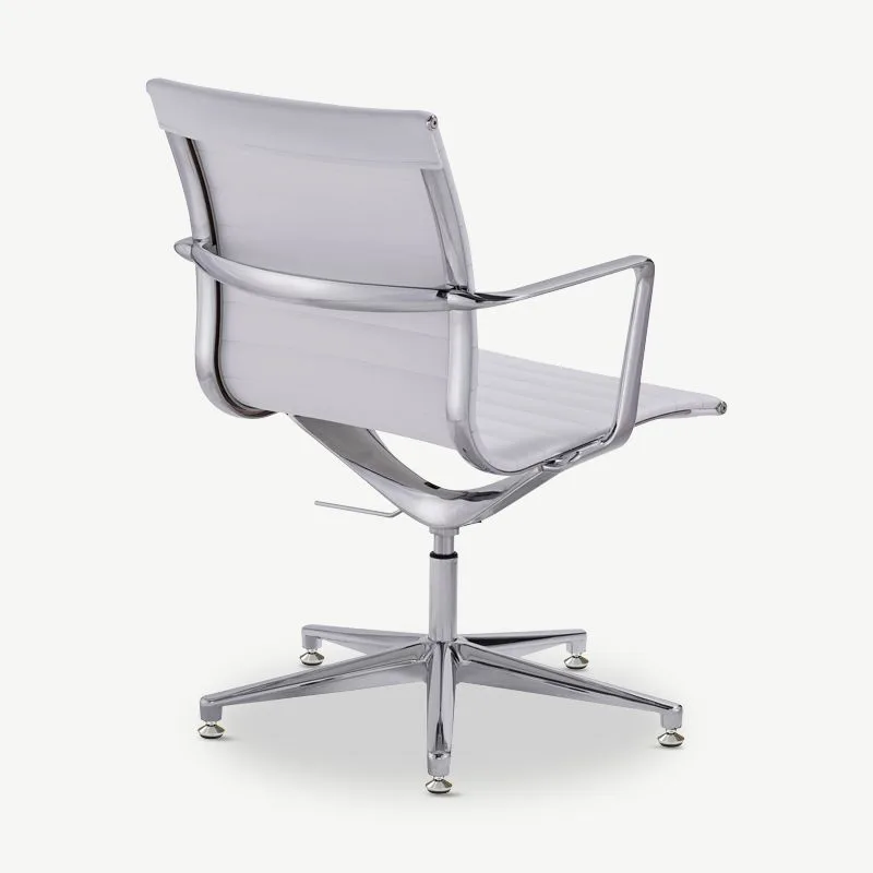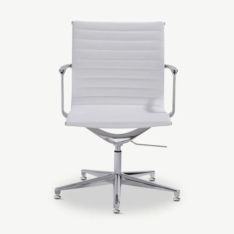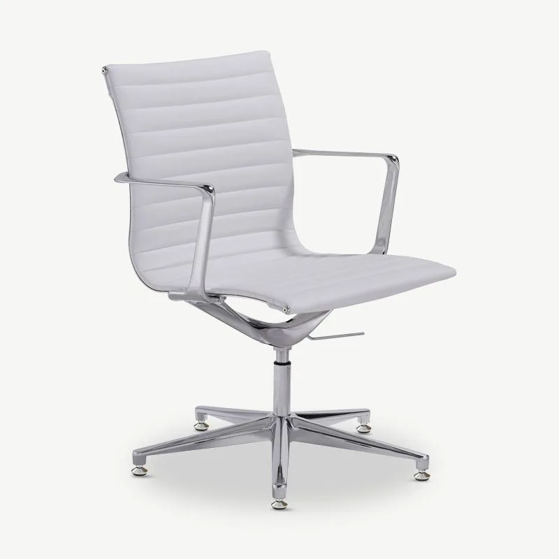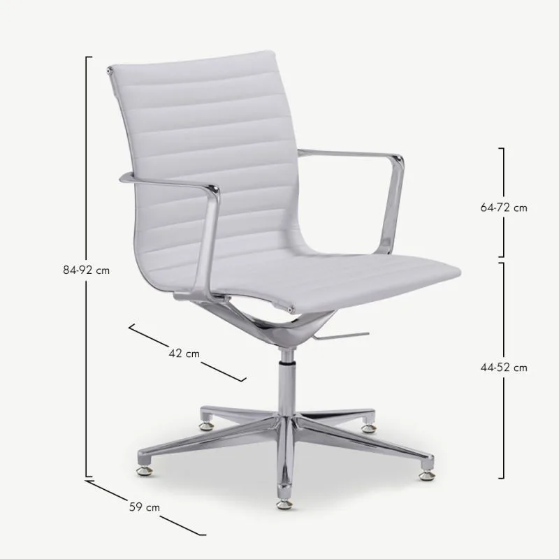 Mateo konverentsitool ühendab endas elegantse disaini ja ergonoomilise mugavuse. Selle valgest kunstnahast polsterdus ning kroomitud metallist jalad loovad professionaalse ja ajatu ilme, sobides suurepäraselt nii modernsesse kontorisse kui ka klassikalisse koosolekuruumi.