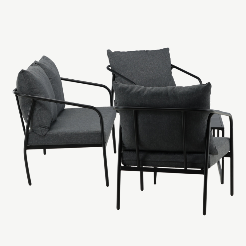 Metallist aiadiivani komplekt Sopot ühendab puhtad jooned ja vastupidavad materjalid. Mustast metallist raam tagab stabiilsuse ja pikaealisuse, samas kui istme- ja seljatoepadjad pakuvad mugavust. Minimalistlik disain ja neutraalsed toonid võimaldavad seda komplekti lihtsalt sobitada erinevate aiastiilidega.