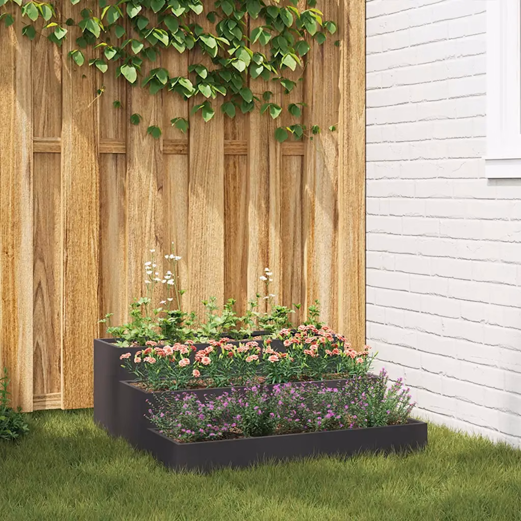 See mustast külmvaltsitud terasest aiakast loob korrastatud istutusala rõdule, terrassile või aeda. Ilmastikukindel ja stabiilne konstruktsioon sobib erinevate lillede ja maitsetaimede kasvatamiseks välistingimustes.