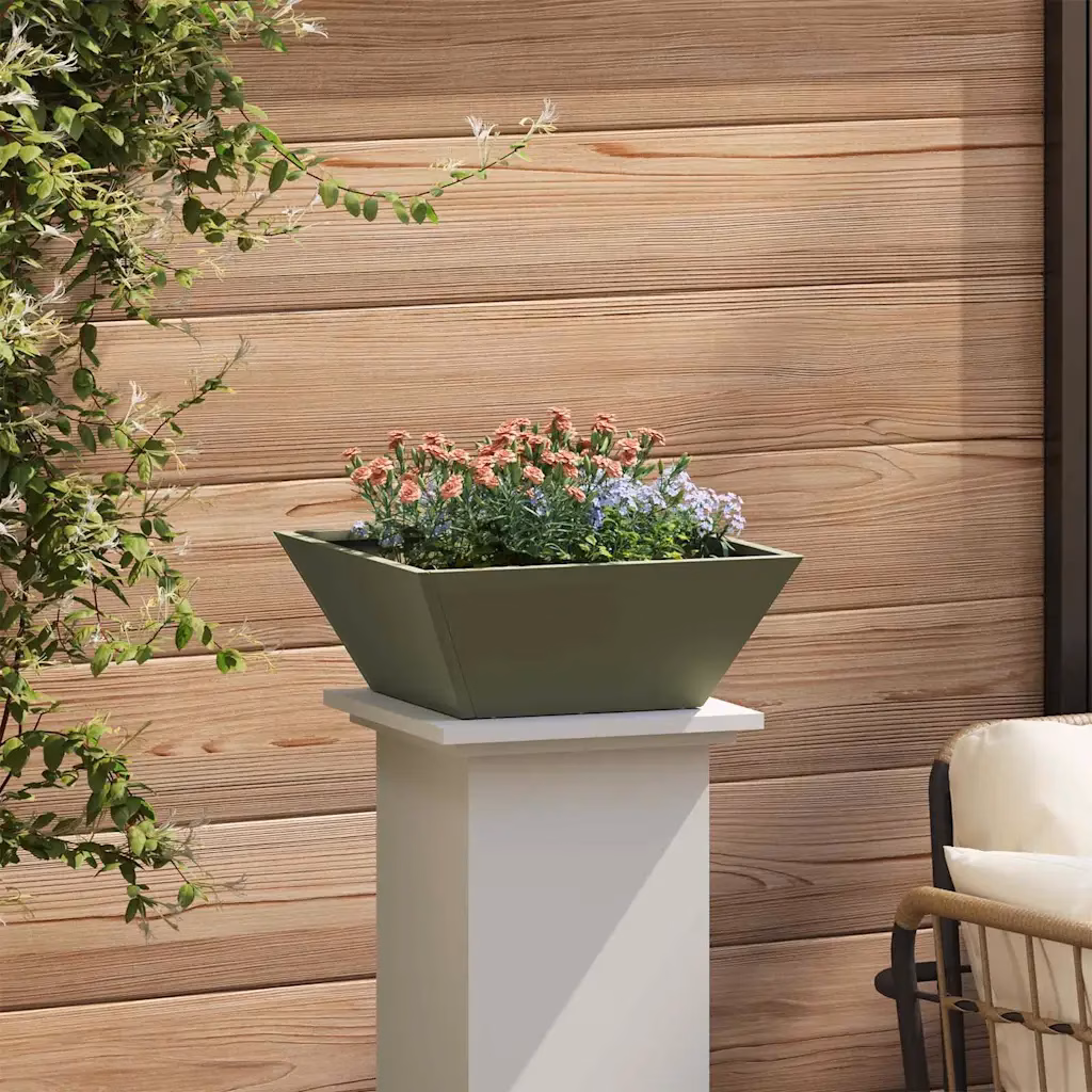 See oliiviroheline metallist aiapott sobib hästi terrassile, rõdule või aeda, kui soovid luua modernse ja minimalistliku istutusala. Trapetskujuline madal vorm võimaldab potti mugavalt lauale või madalale pinnale paigutada ning ruudukujuline 40 x 40 cm pealispind pakub piisavalt ruumi lilledele, madalatele põõsastele ja dekoratiivsetele rohtudele.