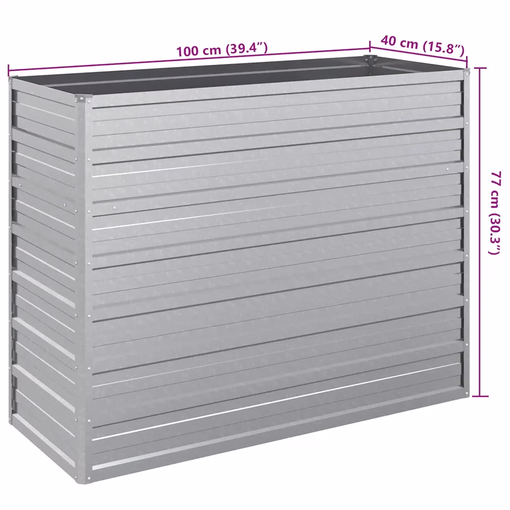 Metallist peenrakast aitab luua selge ja korrastatud istutusala aias, rõdul või terrassil. Hõbedane tsingitud terasest konstruktsioon on mõeldud kasutamiseks õues ning sobib nii lillede, maitsetaimede kui köögiviljade kasvatamiseks. Tänu mõõtudele 100 x 40 x 77 cm on see avatud põhjaga kõrgpeenar ruumikas, kuid samas lihtsasti paigutatav erinevatesse välialadesse.