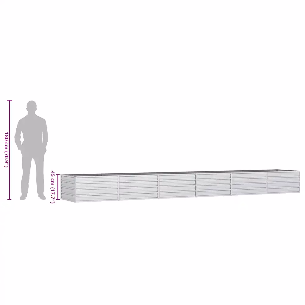 Valige see hõbedane tsingitud terasest peenrakast, kui soovite luua ühe pika ja ühtlase istutusala, mis on samas vastupidav ja hästi hooldatav. See sobib nii uute peenarde rajamiseks kui ka olemasolevate alade selgeks piiritlemiseks, pakkudes piisavalt ruumi erinevate taimede kasvatamiseks nii aias kui ka linnakeskkonnas rõdul või terrassil.
