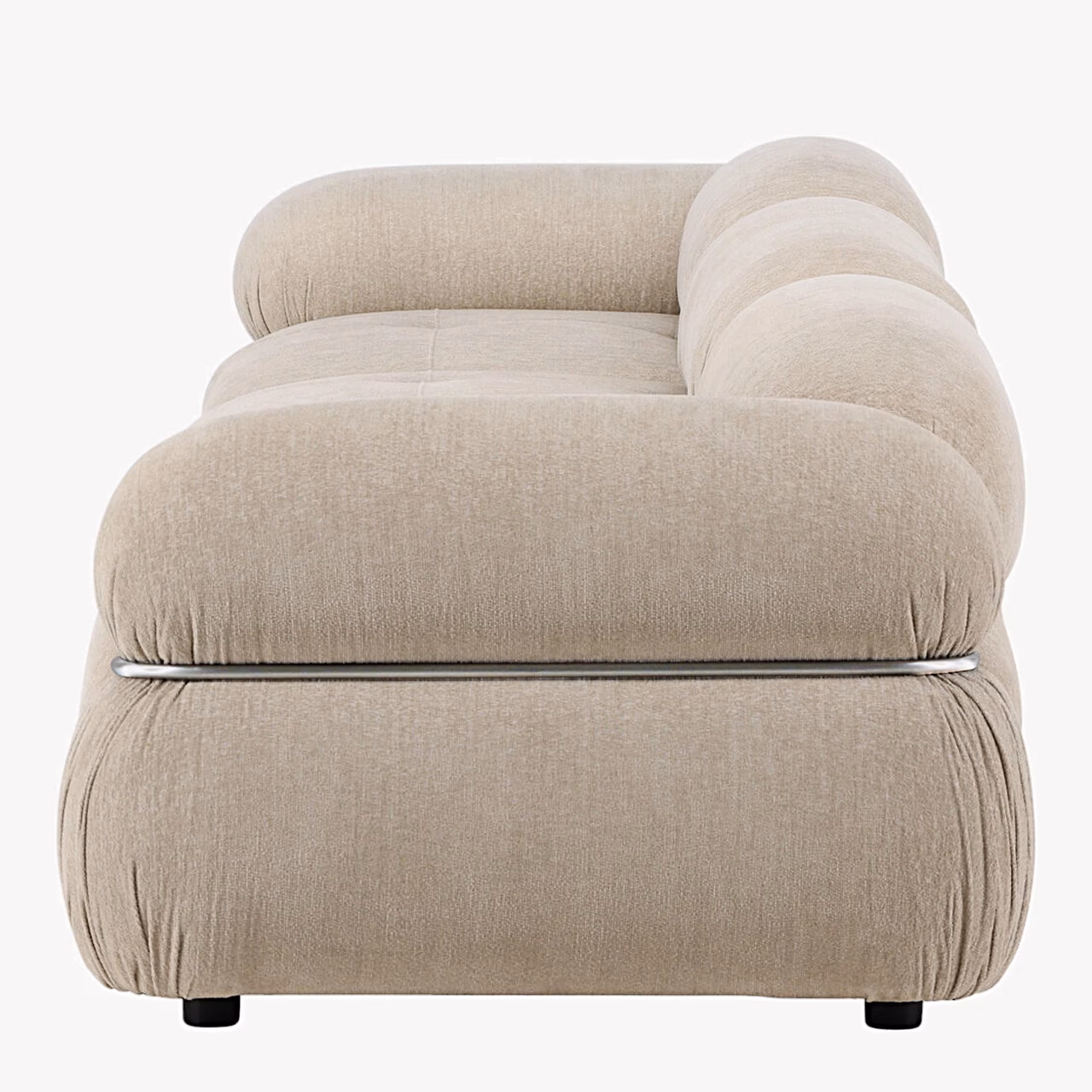 • Kaasaegne värvikombinatsioon – beež polster, mustad jalad ja kroomtoonis detailid moodulite liitekohtades lisavad interjöörile maitsekalt modernse aktsendi.