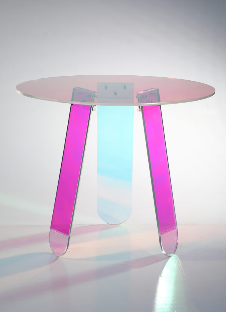 Täiendavad detailid: Iridescent akrüül, erinevad värviefektid valguse langemise järgi.