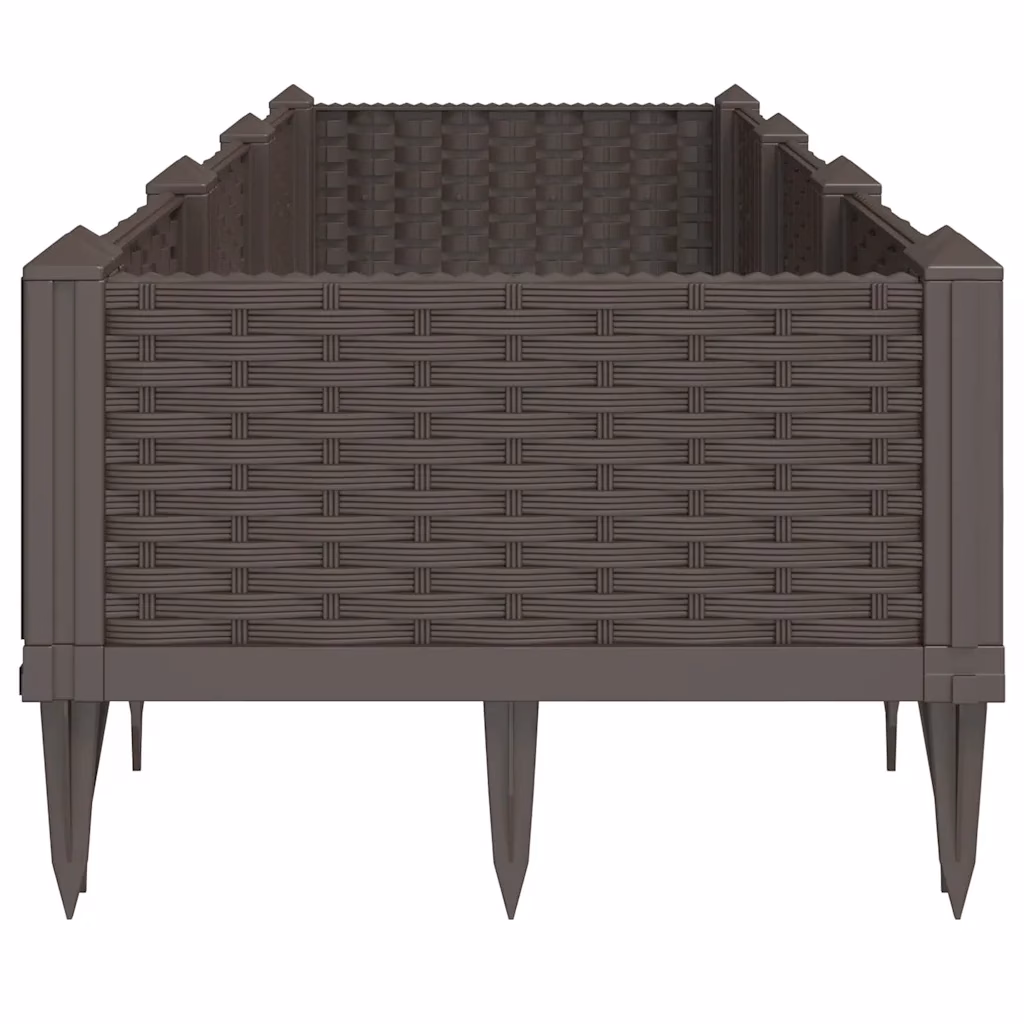 See pruun vaiadega taimekast sobib köögiviljade, maitsetaimede ja dekoratiivsete lillede kasvatamiseks aias. Rotangimustriga PP-konstruktsioon on kerge, vastupidav ja ilmastikukindel, pakkudes samal ajal piisavalt ruumi taimede juurdumiseks. Modulaarne ehitus võimaldab taimekasti kuju ja kasutusviisi vastavalt vajadusele kohandada.