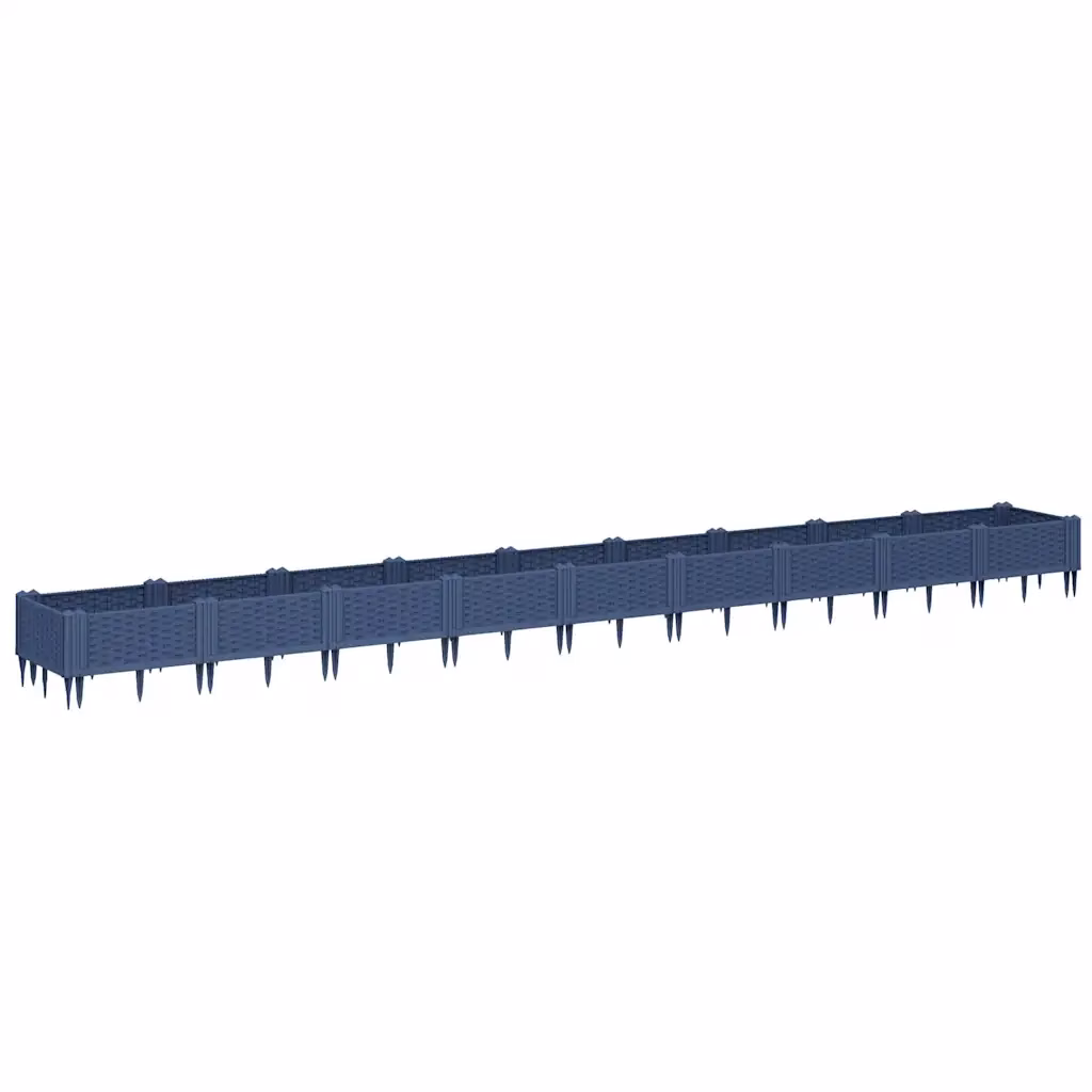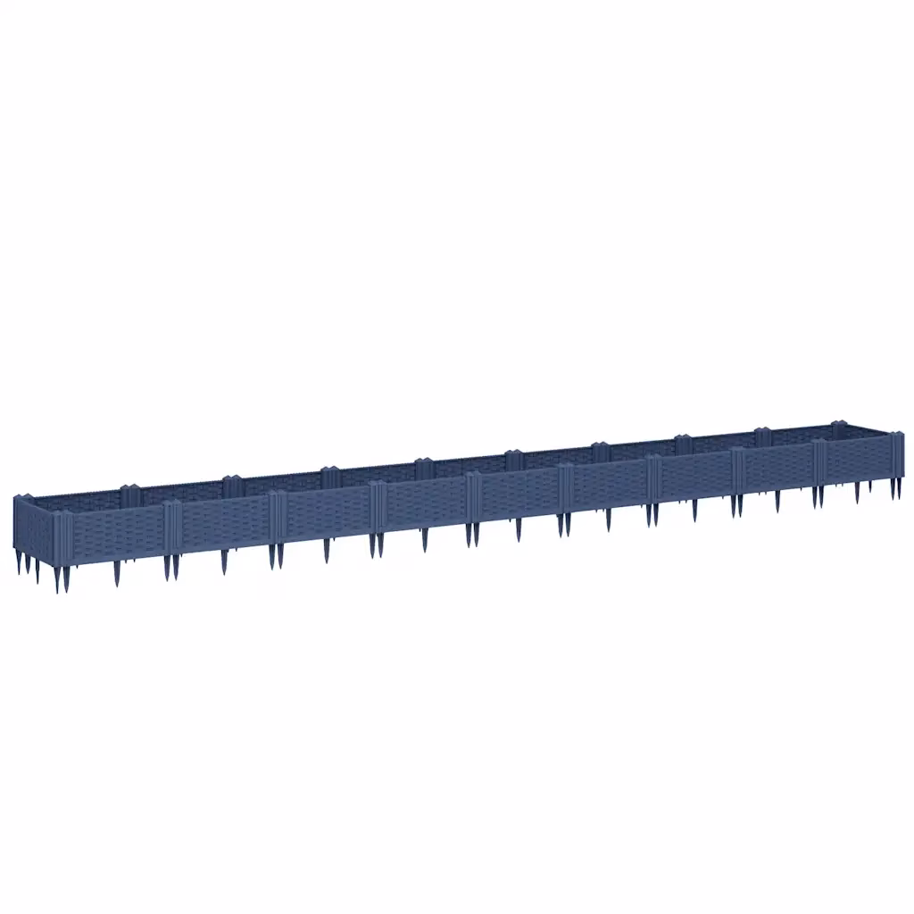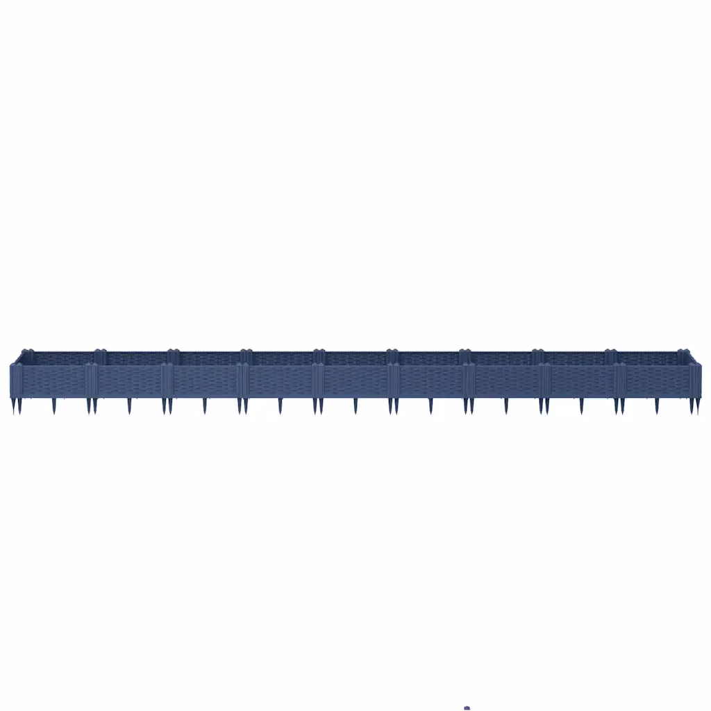 See modulaarne vaiadega taimekast on praktiline lahendus köögiviljade, maitsetaimede ja dekoratiivsete lillede kasvatamiseks ning peenarde selgeks eraldamiseks murust. Sinihall rotangimustriga PP-konstruktsioon on kerge ja ilmastikukindel ning pikk moodul võimaldab luua ühtlase joone mööda aeda või hoovi piiri. Alumine põhi puudub, mis tagab taimedele loomuliku drenaaži ja juurte vaba kasvu pinnasesse.