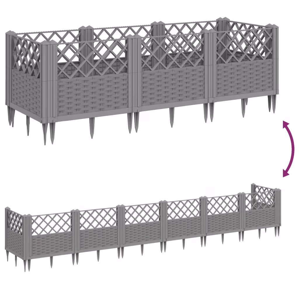 • Vaiad stabiilsuse jaoks – 11,5 cm kõrgused vaiad aitavad kastil kindlalt paigal püsida ja eraldavad külgneva muruala või peenra servad.