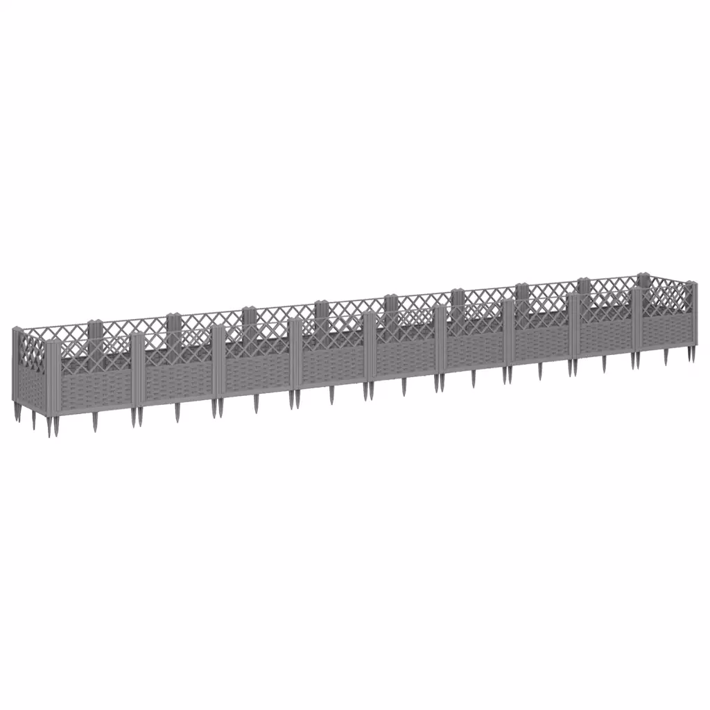 Komplektis on 20 omavahel ühendatavat paneeli ning vastav arv vaiu, mille abil moodustub pikk helehall rotangimustriga taimekast või madal aiapiire. Kõik vajalikud plastdetailid konstruktsiooni kokkupanekuks on kaasas.