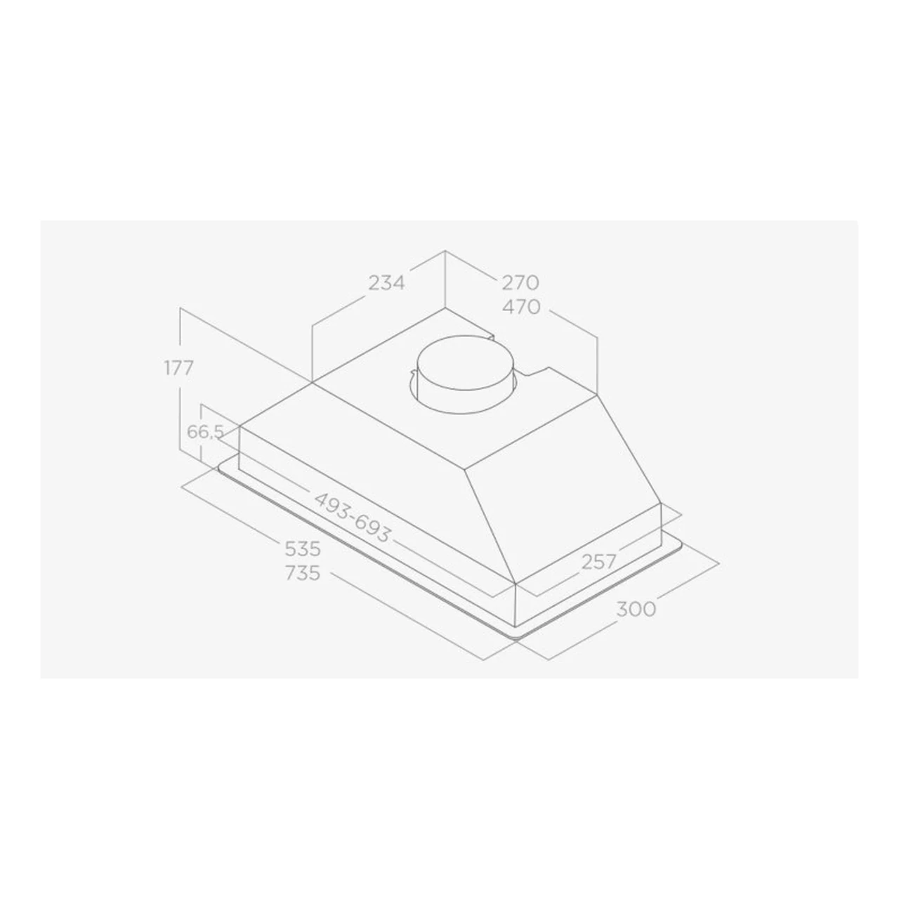 - Mööblisse integreeritav lahendus paigaldatakse ülemkappi, hoides köögis selge ja ühtlase joonduse.