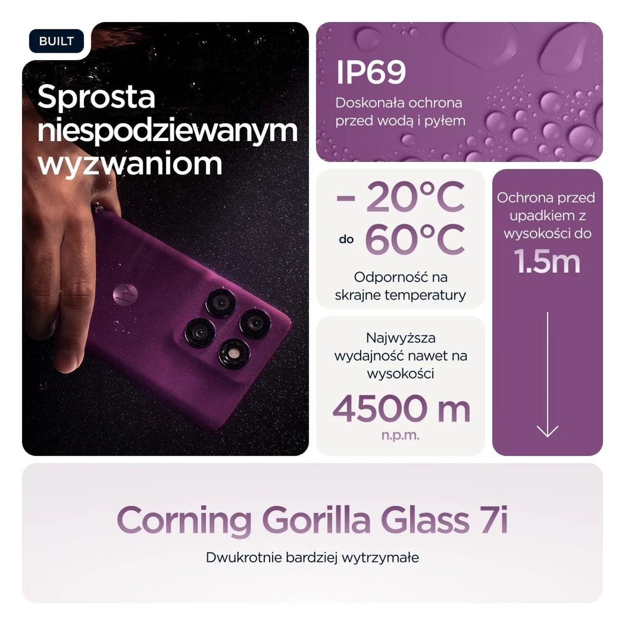 Kokkuvõte: Motorola Edge 60 Pro lilla 5G nutitelefon ühendab kaasaegse disaini, tipptehnoloogia, suure jõudluse ja pika kasutusea – turvaline ja paindlik nutiseade igapäevaseks ning tööks ja vaba aja veetmiseks.