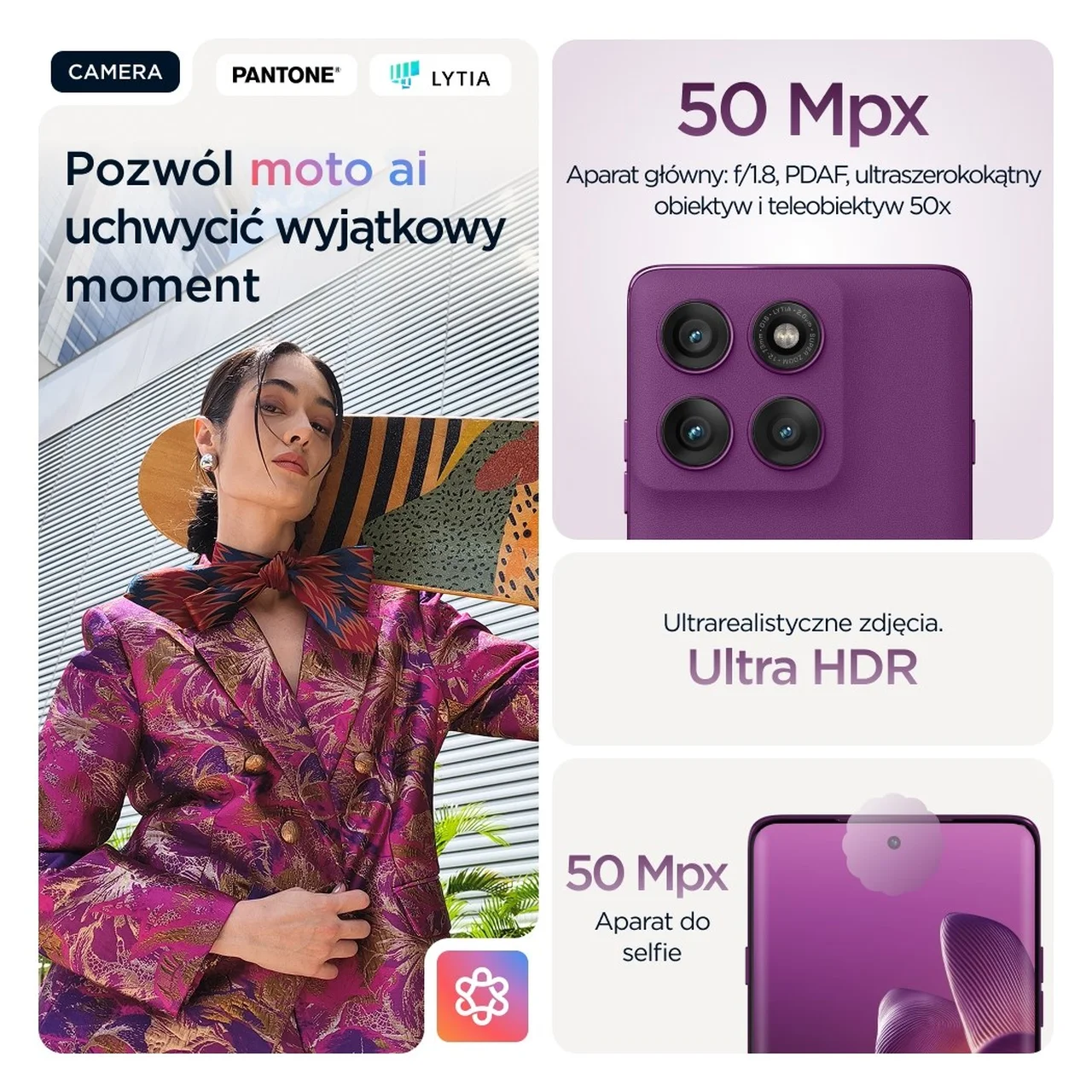 Motorola Edge 60 Pro PB7X0011PL 6,67" 5G 12 GB/512 GB lilla IP68/IP69 MIL-STD-810H Dual SIM Android 15 nutitelefon, 6000 mAh aku, 90 W kiirlaadimine