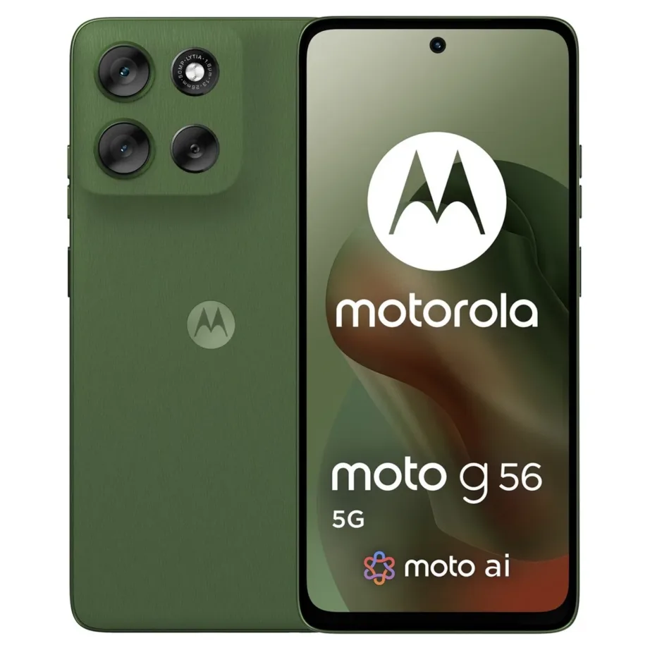 Motorola Moto G56 5G on 6,72-tollise 120 Hz ekraaniga roheline nutitelefon, mis pakub kiiret ühendust, 8 GB RAM-i ja 256 GB salvestusruumi.