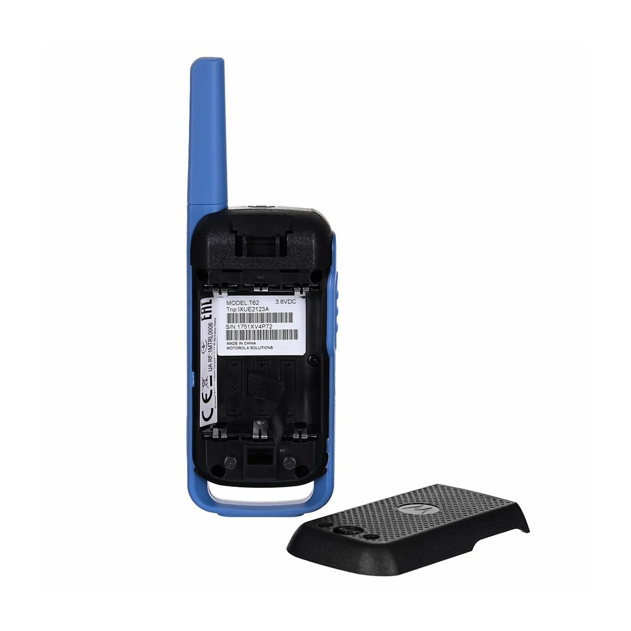 Motorola TALKABOUT T62 on must-sinine PMR-raadio, millel on 16 kanalit, taustvalgustusega LCD-ekraan, laetav aku ja kuni 8 km tööraadius.