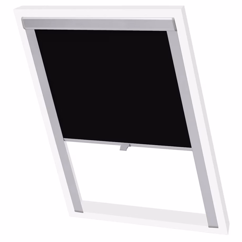 • Pimendav katuseakna ruloo musta värvi polüestrkangast alumiiniumraamiga.