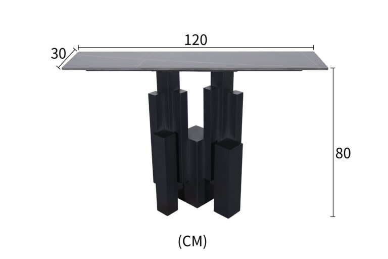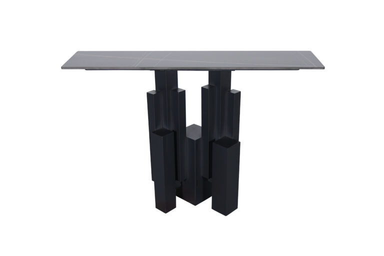 Modig M20-120 konsoollaud esikusse. See ainulaadne konsoollaud on valmistatud süsinikterasest, pakkudes vastupidavust ja kaasaegset stiili. Laua jalg on geomeetriline ruumiline plokk, mille teravad servad sobivad ideaalselt lihtsa ristkülikukujulise lauaplaadiga, mis imiteerib marmorit. See kombinatsioon lisab teie esikule elegantse ja kaasaegse ilme.