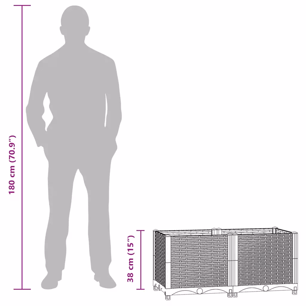 See must polüpropüleenist kõrgpeenar pakub praktilist lahendust lillede, ürtide ja köögiviljade kasvatamiseks aias, rõdul või terrassil. 80 x 40 x 38 cm mõõtmetega peenar on piisavalt kompaktne, et sobituda väiksemassegi väliruumi, kuid samas pakub 30 cm sügavune istutusala taimedele rohket kasvuruumi.