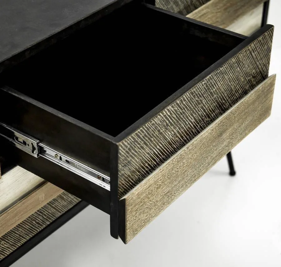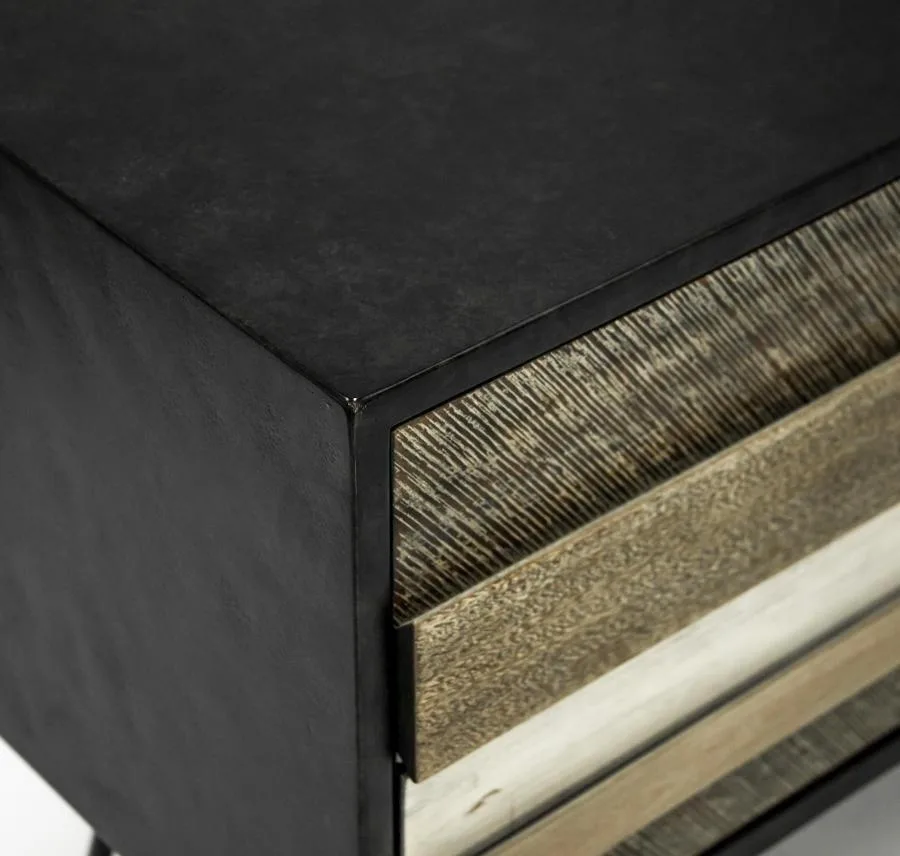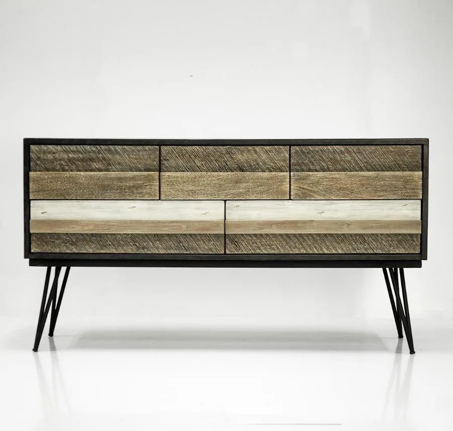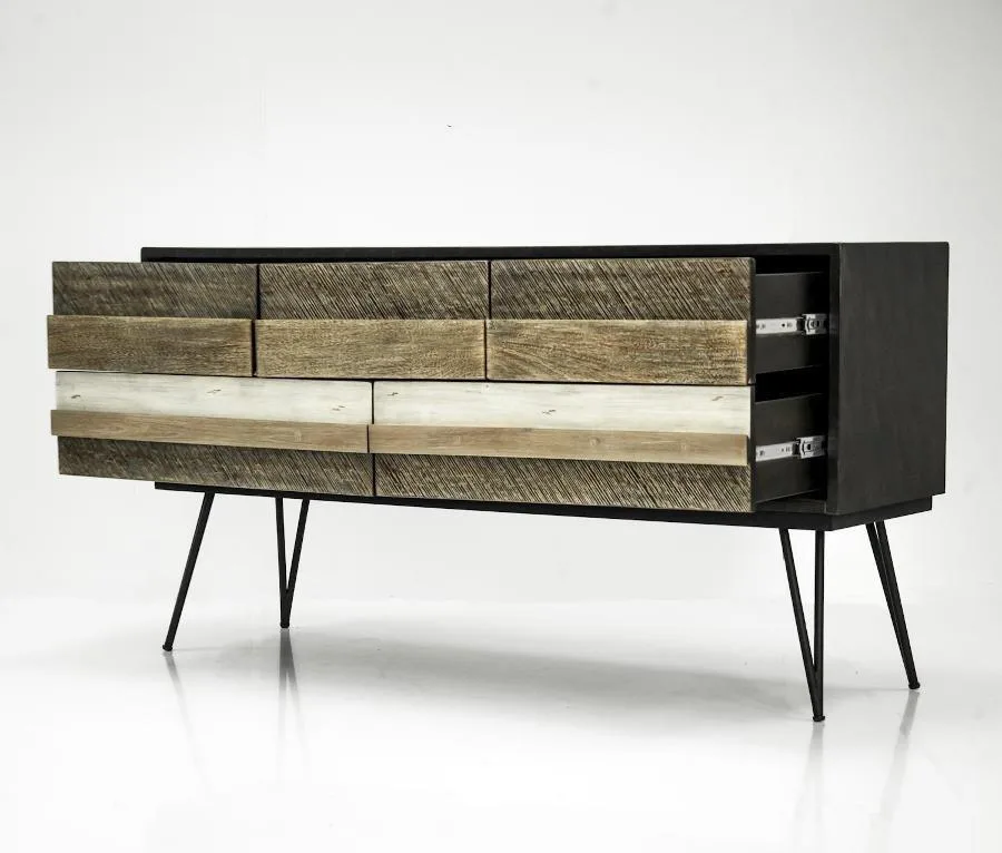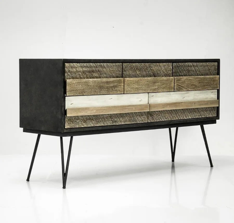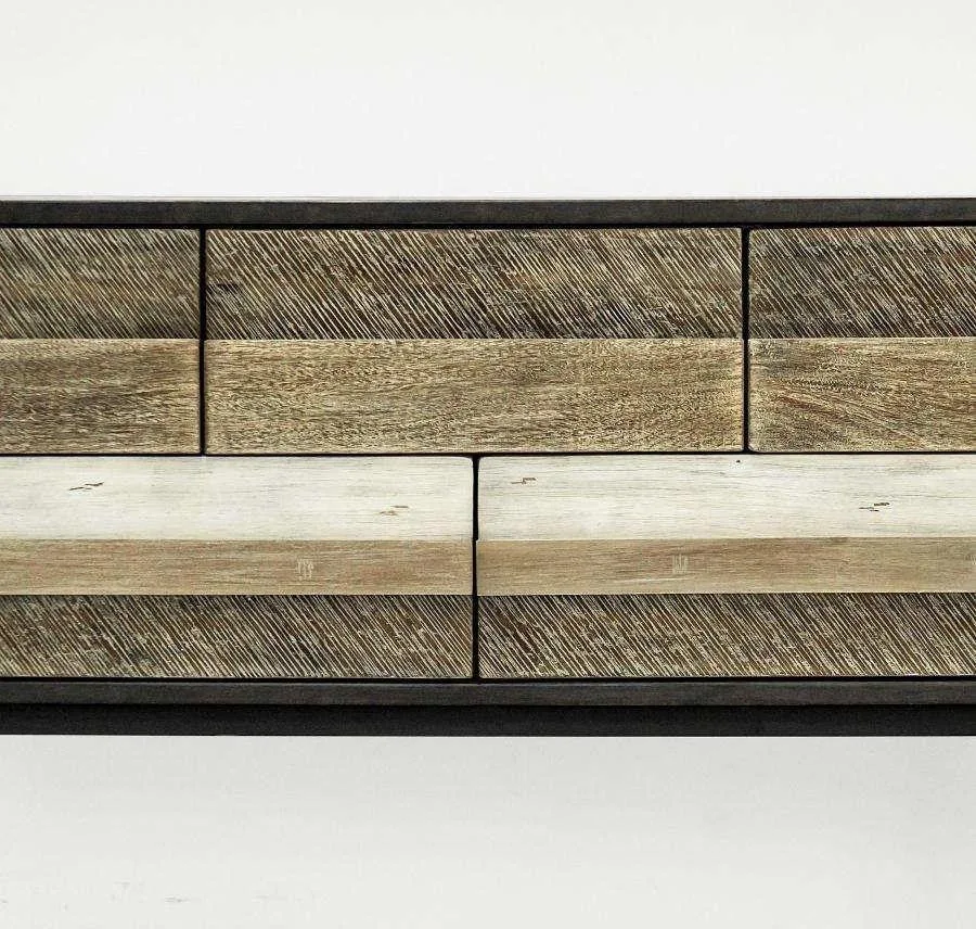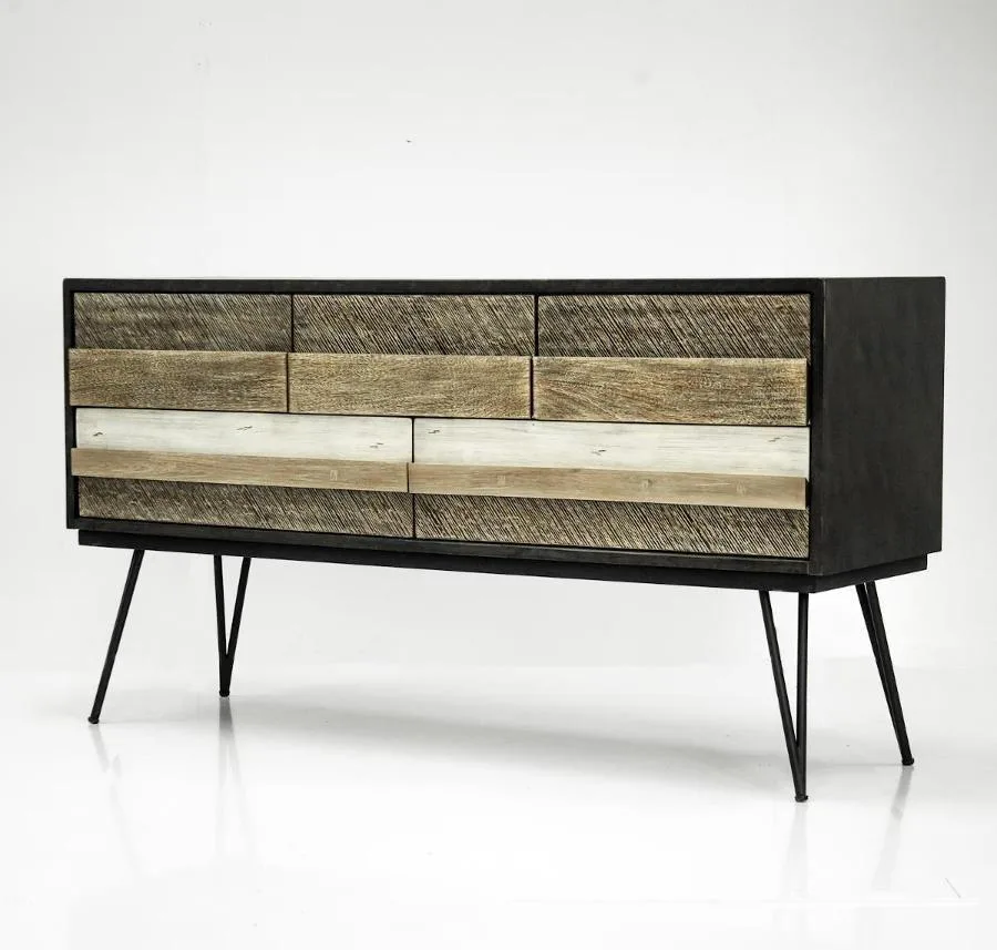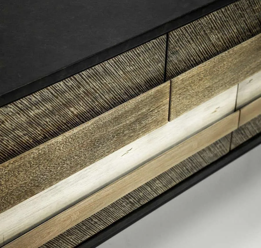 Adesso ADESB04 kummut elutuppa. See retrostiilis kummut on osa Adesso kollektsioonist ning toob teie elutuppa ajatu elegantsi ja praktilisuse. Kummuti esipaneelid on valmistatud erinevatest täispuidust toonidest, mis loovad 3D struktuuri ja rikastavad puidu tekstuuri. Need esipaneelid toimivad ka praktiliste servakäepidemetena, pakkudes mugavat kasutuskogemust. Kummuti mustad metallist jalad lisavad sellele modernset ja stiilset ilmet.