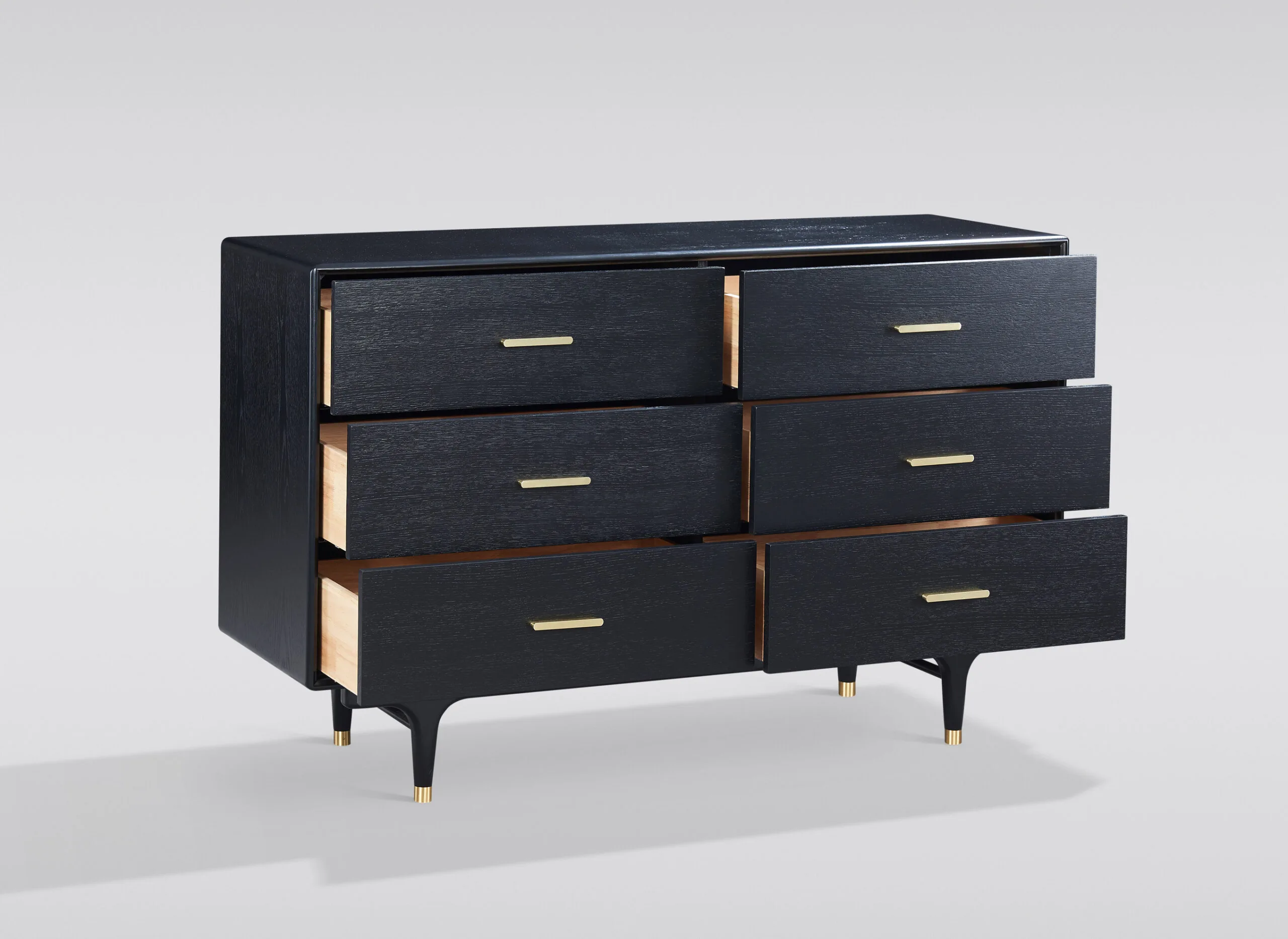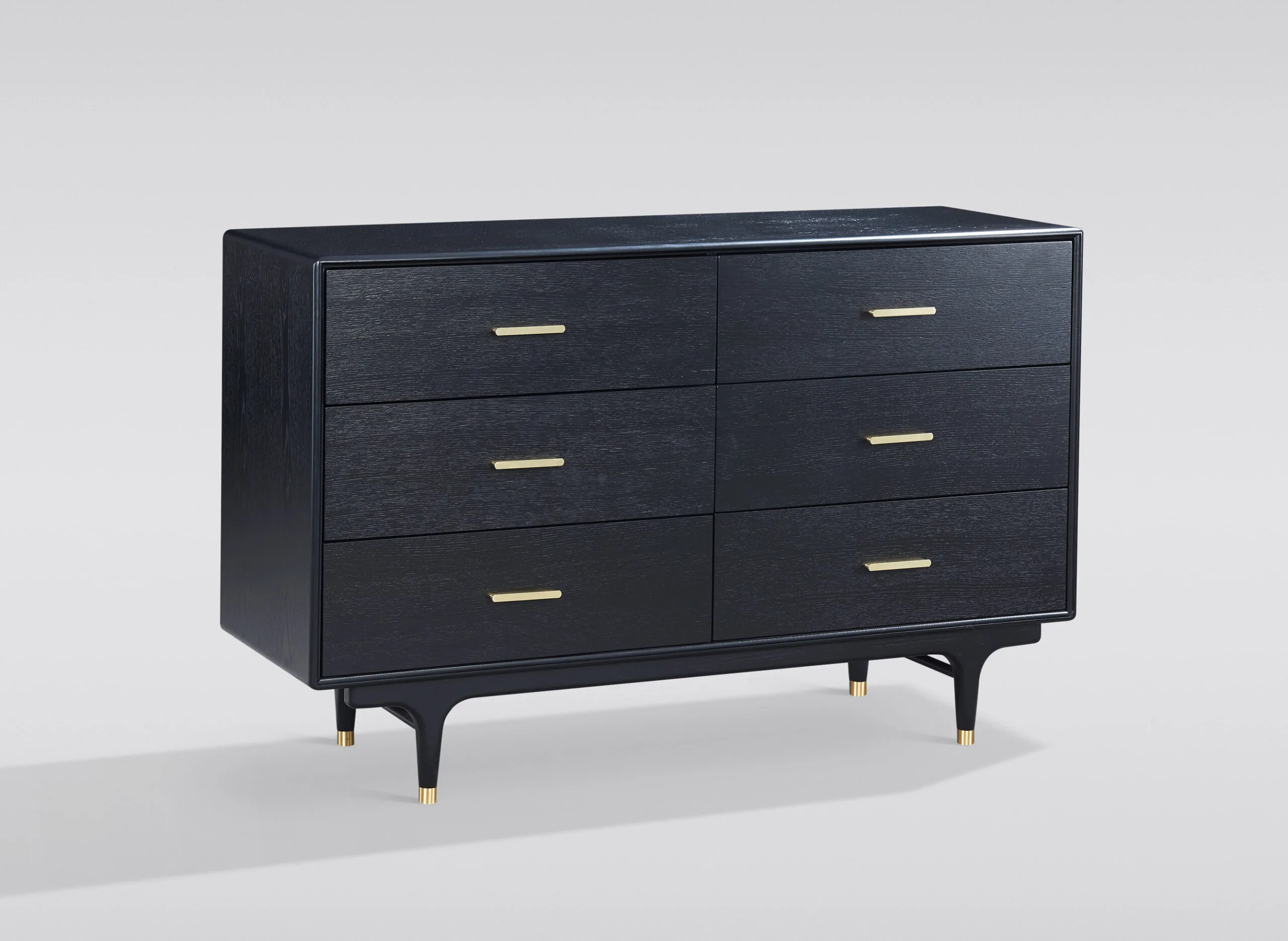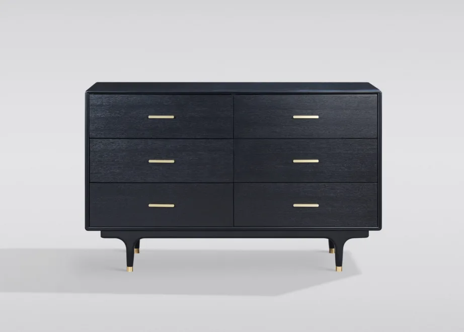 Kummut on varustatud kuue avara ja pehmelt sulguva sahtliga, mis tagavad vaikse ja mugava kasutamise ning sobivad suurepäraselt igapäevaste esemete hoiustamiseks. Tänu reguleeritavatele jalgadele seisab mööbel stabiilselt igal pinnal. Musta ja kulla kombinatsioon annab sellele ajatu ja elegantse välimuse, sobitudes suurepäraselt nii modernsete kui ka klassikaliste interjöörilahendustega.